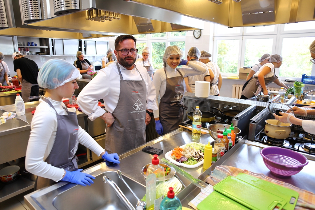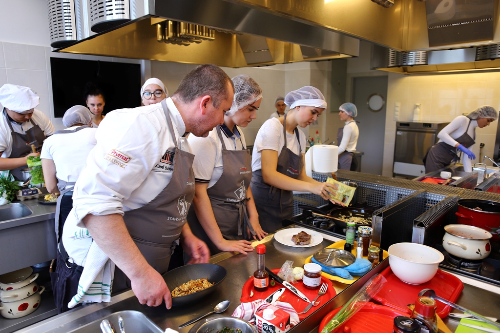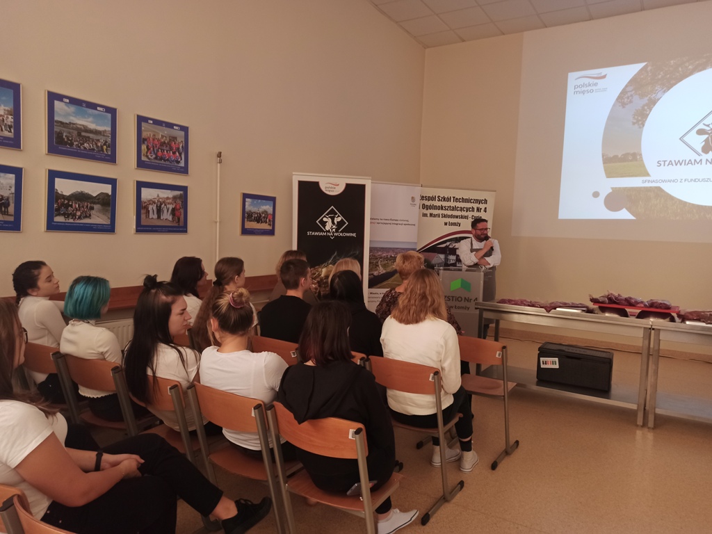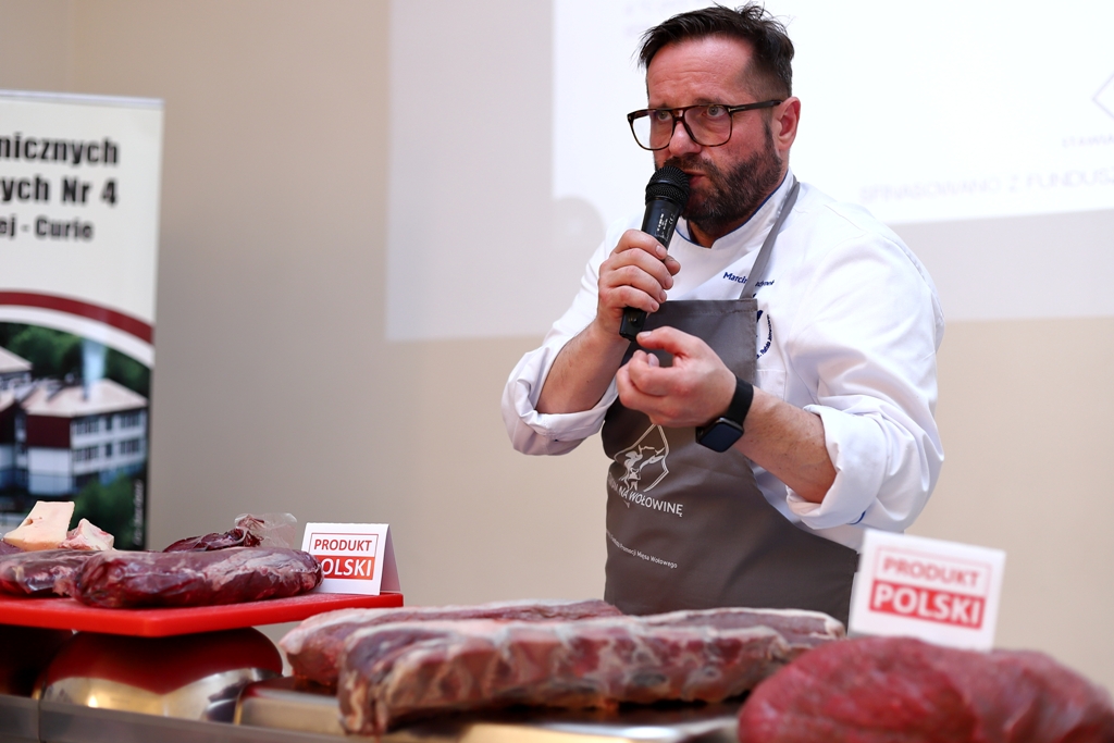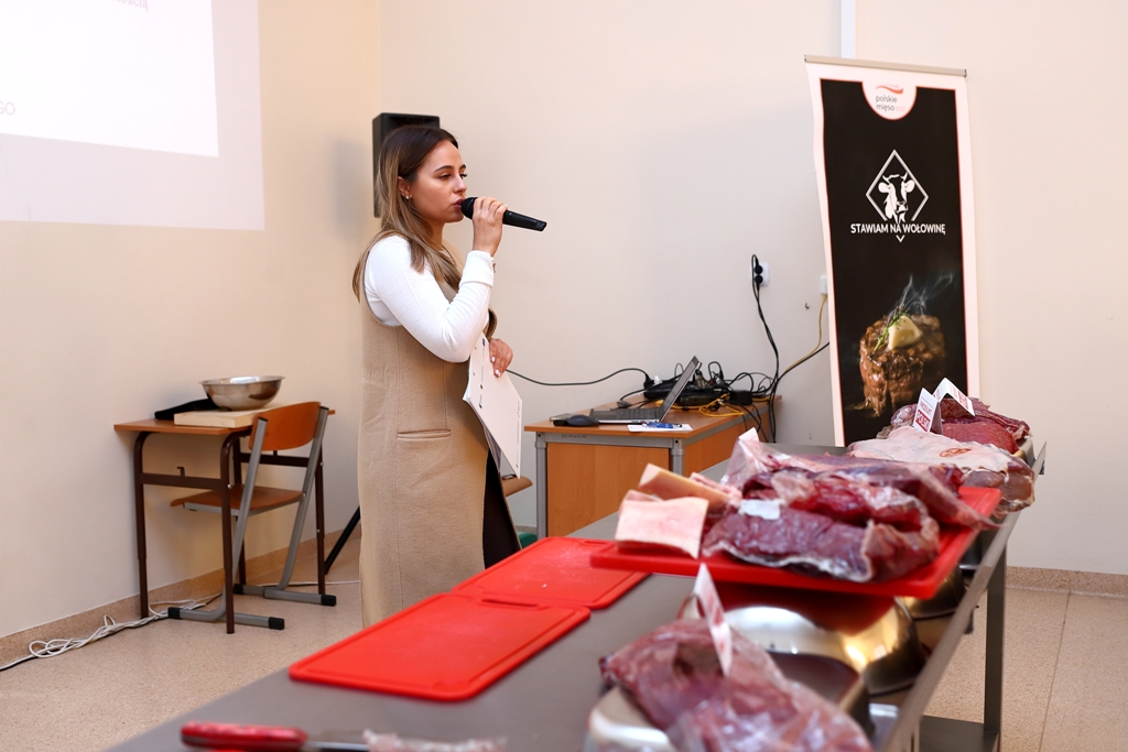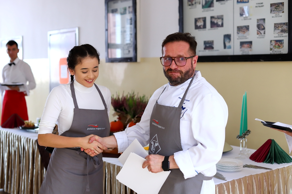 W dniu 30.09.2022 r. po raz kolejny odbyły się w naszej szkole, warsztaty kulinarne z obróbki mięsa wołowego, prowadzone przez znakomitego kreatora smaku, kucharza Pana Marcina Budynka. Tym razem przebiegały one pod hasłem „Stawiam na wołowinę”. Pomysłodawcą programu informacyjno - szkoleniowego z zakresu jakości mięsa wołowego, wśród uczniów szkół gastronomicznych jest Związek Polskie Mięso. Program merytorycznie wspierany jest przez Akademię Kulinarną Marcina Budynka. Głównym celem projektu jest objęcie profesjonalnym szkoleniem uczniów wybranych szkół gastronomicznych oraz przeprowadzenie instruktarzy z zakresu obróbki technologicznej mięsa.