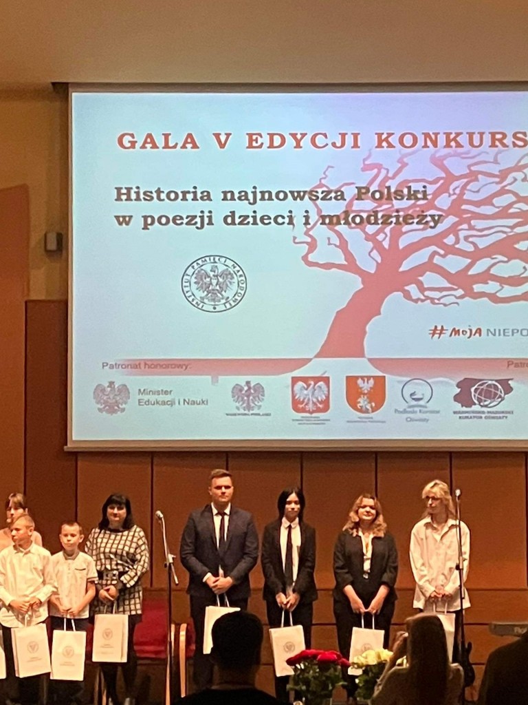 W dniu 11.10. w Białymstoku odbyła się V gala konkursu literackiego IPN-u, w którym wyróżnienie otrzymała nasza uczennica Anna Gładysiak z kl. 4 TŻ/AHg. Gratulujemy sukcesu. Jej wiersz zostanie opublikowany w tomiku poezji który wyda IPN. Opiekunem szkolnym Ani Gładysiak był p. Wiesław Czupryński.
