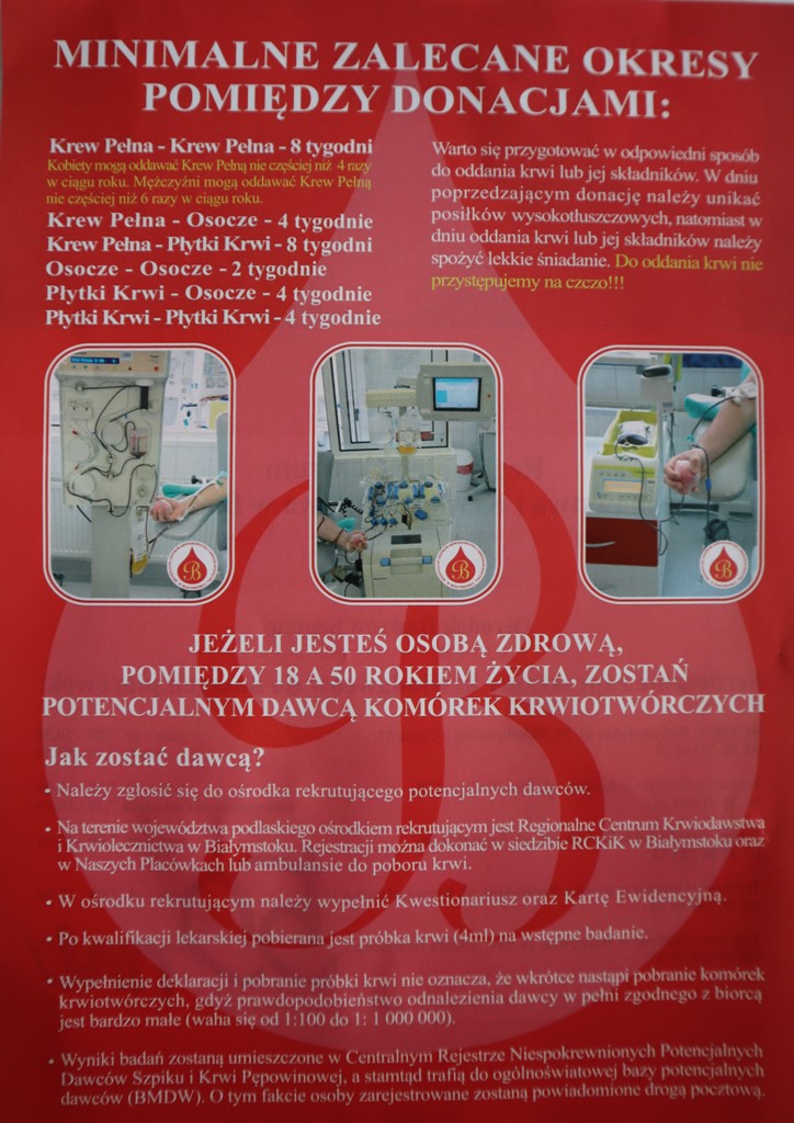 Zachęcamy jednocześnie wszystkich pełnoletnich w pełni zdrowych uczniów do dzielenia się najcenniejszym darem, którego nie można kupić, ani wyprodukować.