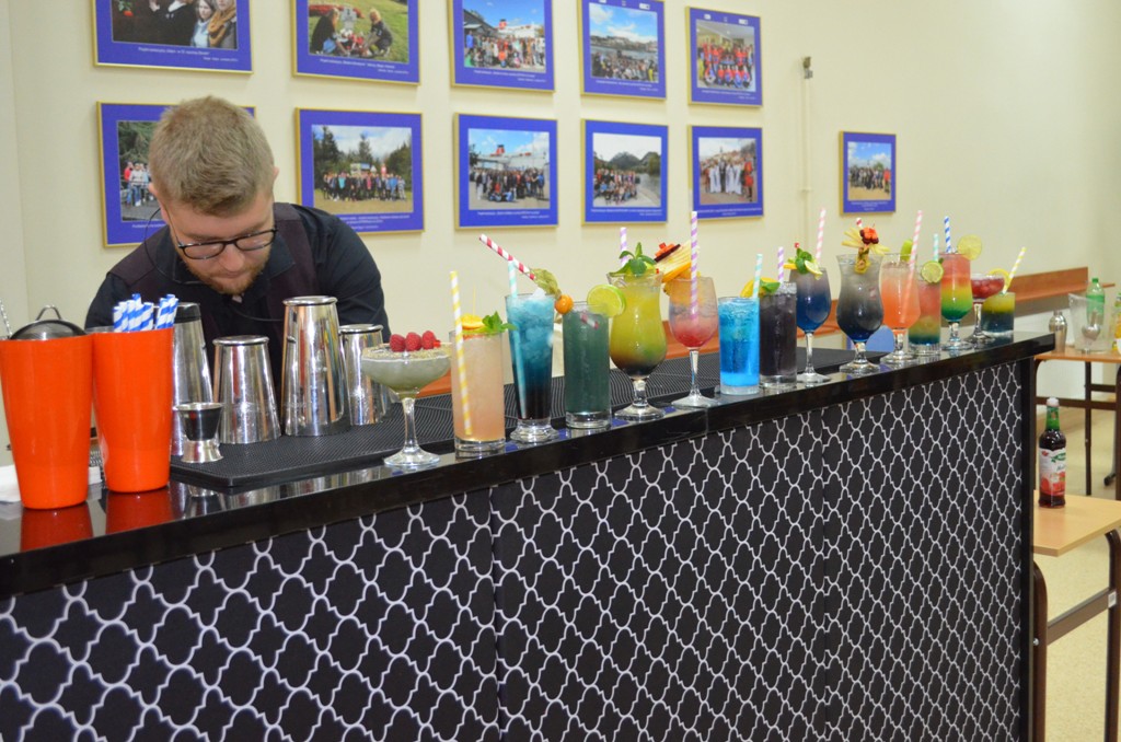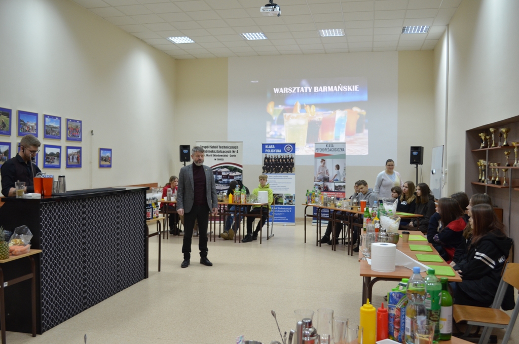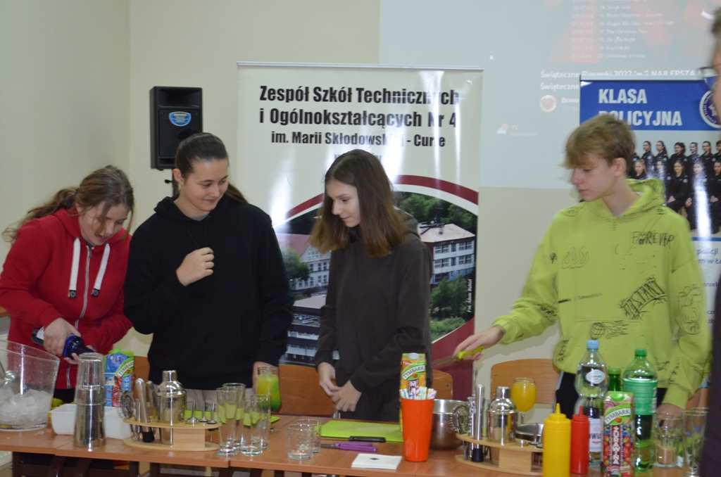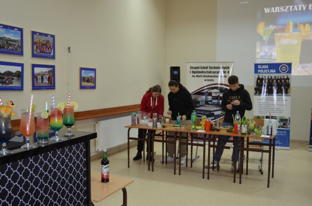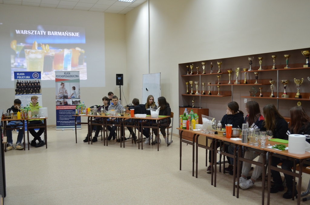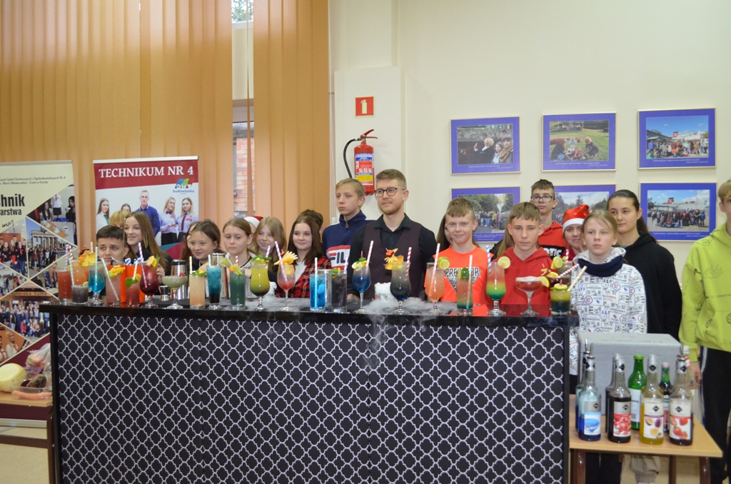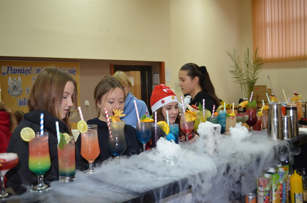 Podczas szkolenia uczniowie wzięli udział w warsztatach barmańskich, w trakcie, których zapoznali się z pracą barmana, oraz technikami przygotowywania owocowych koktajli.