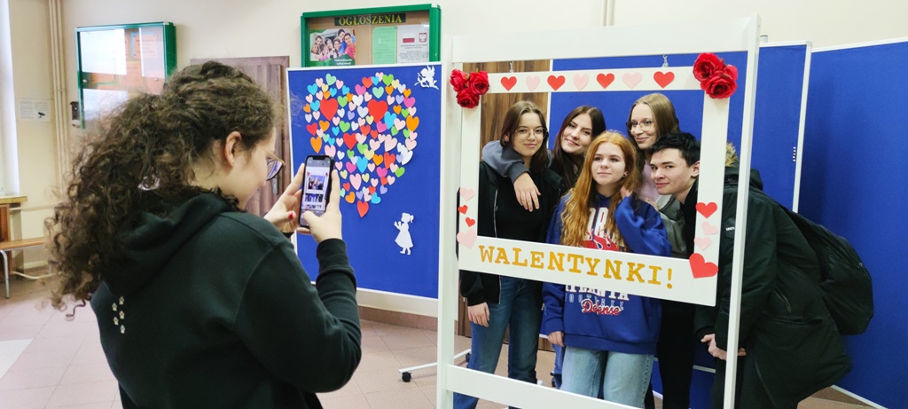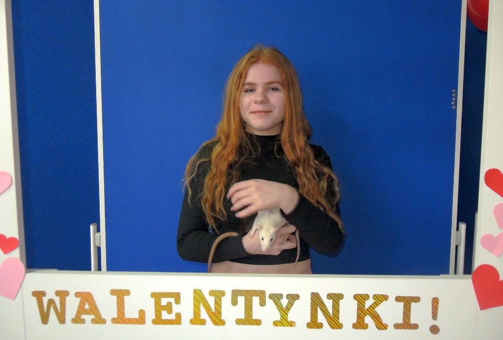 Podczas Walentynek obowiązywał ubiór w kolorze czerwonym lub dodatki w tym kolorze, a na szkolnym korytarzu czekała specjalnie przygotowana ścianka-ramka do robienia zdjęć z sympatiami i przyjaciółmi. Można było także zrobić sobie fotki z sympatycznymi szczurkami, które odwiedziły szkołę pod opieką pani L. Ciborowskiej. Fotoramkę wykonał pan Andrzej Cwalina, któremu bardzo dziękujemy w imieniu całej społeczności szkolnej.