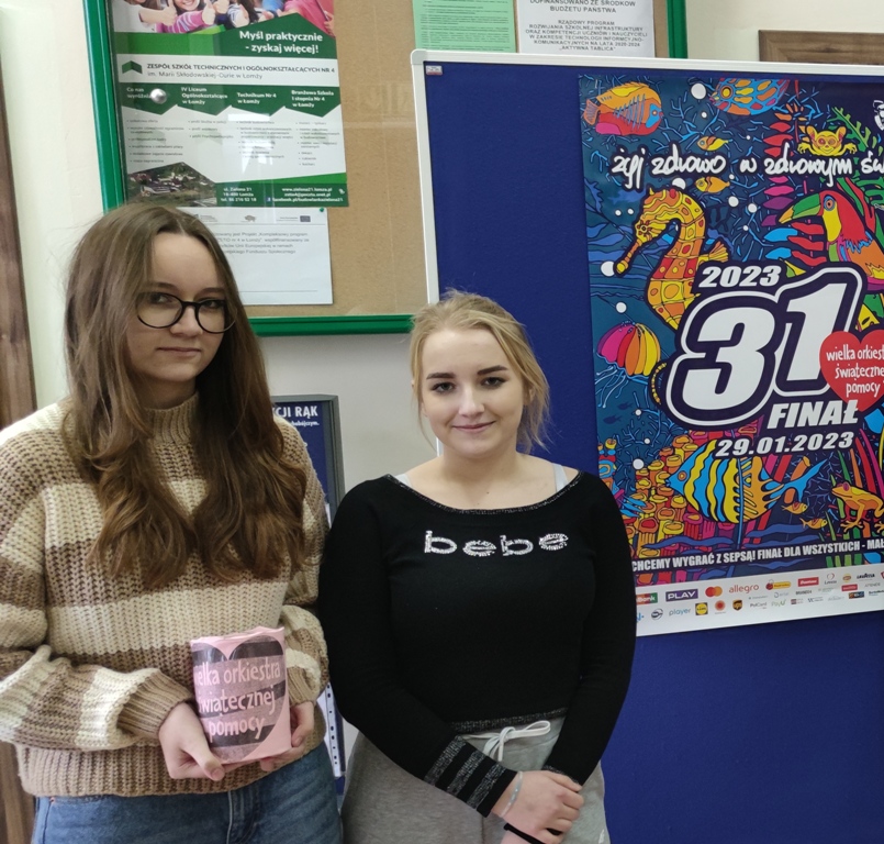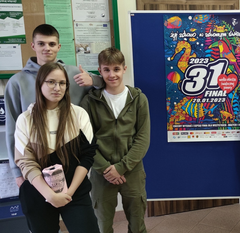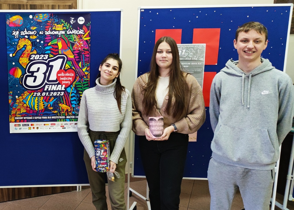W tym roku nasi uczniowie uczestniczyli wraz z Samorządem Uczniowskim w zbiórce Wielkiej Orkiestry Świątecznej Pomocy. Wolontariuszom udało się zasilić konto fundacji na dwa sposoby- kilogramami „złotych grosików” wraz z łomżyńskimi morsami oraz datkami w dodatkowej „puszce na grubszą walutę”.