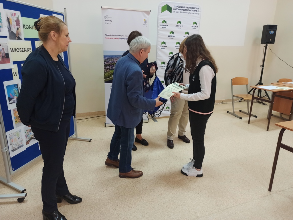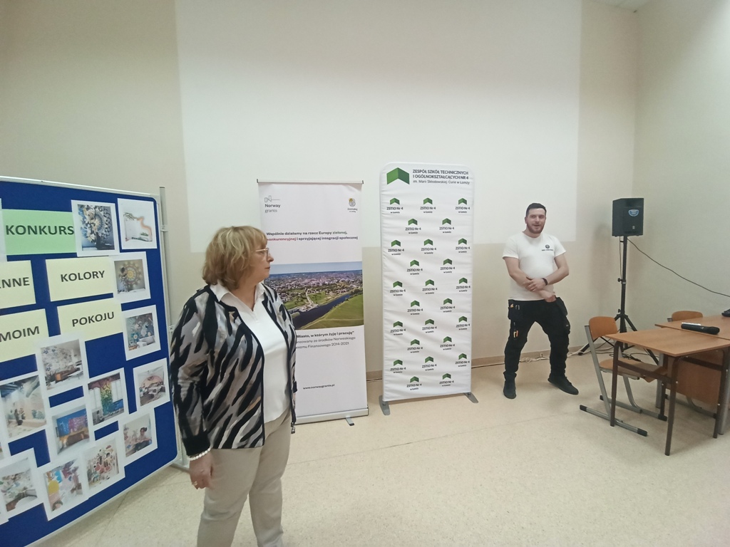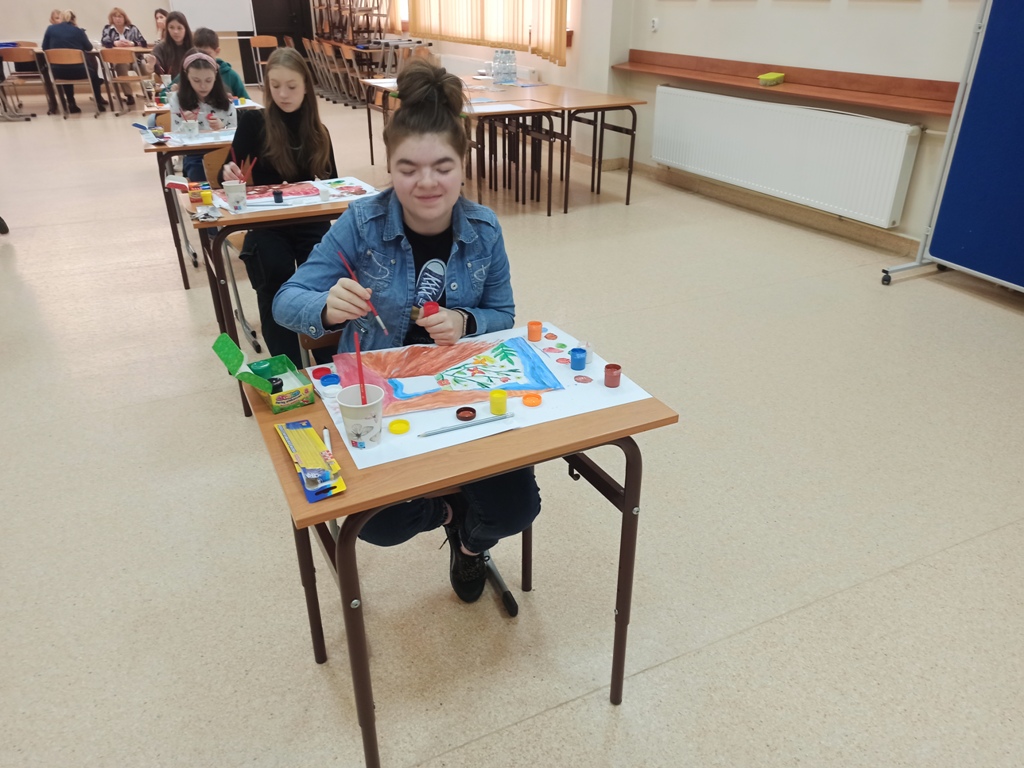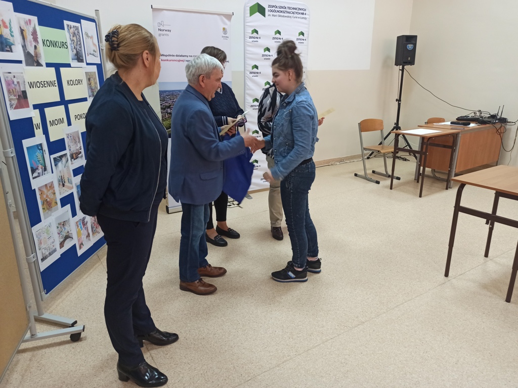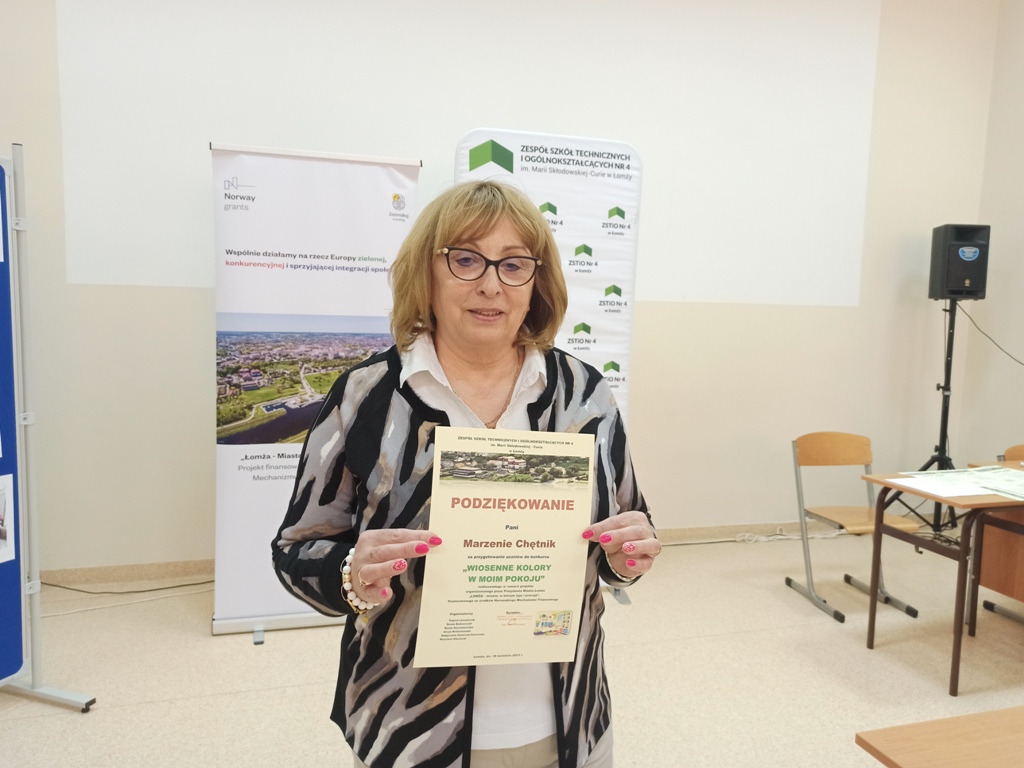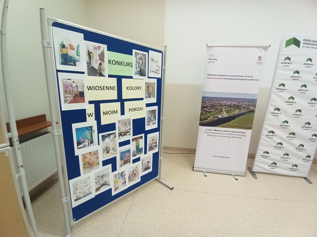 W dniu 19.04.2023r., w ramach projektu „ŁOMŻA – MIASTO, W KTÓRYM ŻYJĘ I PRACUJĘ”, finansowanego ze środków Norweskiego Mechanizmu Finansowego, odbył się w naszej szkole konkurs plastyczny „Wiosenne kolory w moim pokoju”.