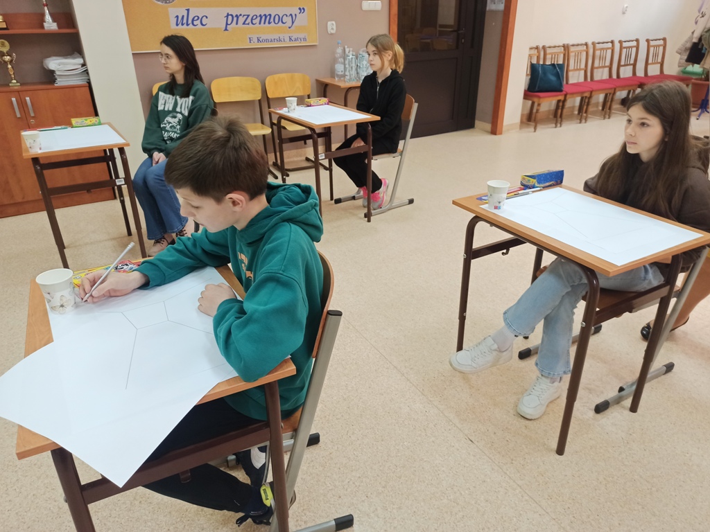 Młodzież zaprezentowała umiejętności plastyczne związane z doborem kolorów i wzorów przy projektowaniu aranżacji własnego pokoju.