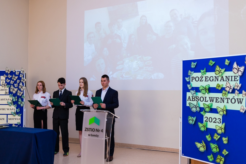 Po oficjalnej części pożegnania wszyscy mieli możliwość obejrzenia występu słowno-muzycznego przygotowanego przez uczniów z klasy 3TH. Niejednej osobie zakręciła się łza w oku, a podniosłą atmosferę dopełniła prezentacja zdjęć absolwentów, przedstawiająca lata spędzone w łomżyńskiej BUDOWLANCE. Pożegnanie uświetniły występy wokalne przygotowane przez uczennice z młodszych klas Dominikę i Kasię. Abiturientom życzono powodzenia na maturze oraz szczęścia na dalszej drodze życia.