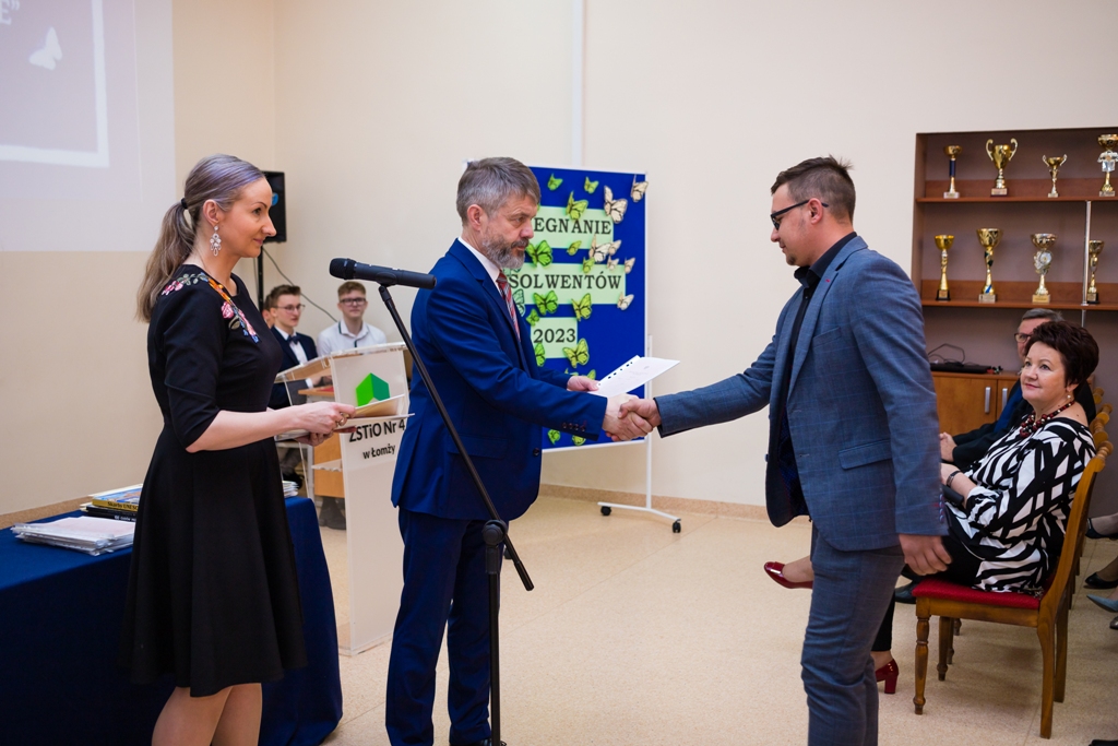 Uroczyste pożegnanie absolwentów było okazją do wręczenia świadectw i nagród najlepszym i wyróżniającym się absolwentom, nagrody wręczył Pan Dyrektor Szkoły Artur Ciborowski wraz z wychowawcami klas Panią Katarzyną Więsak, Panią Emilią Ciborowską-Dajneka oraz Panem Wiesławem Czupryńskim.