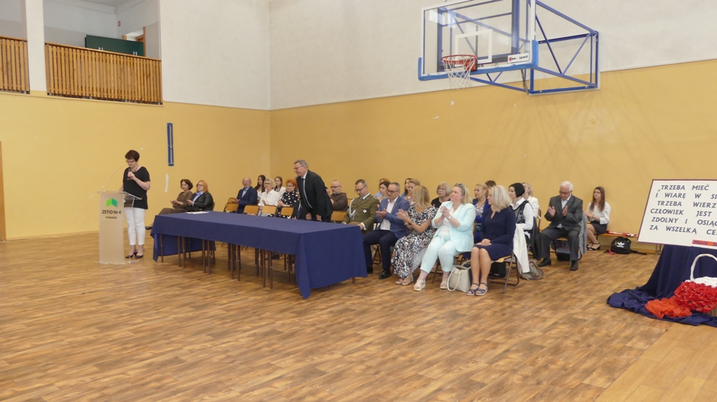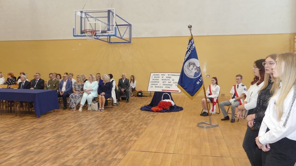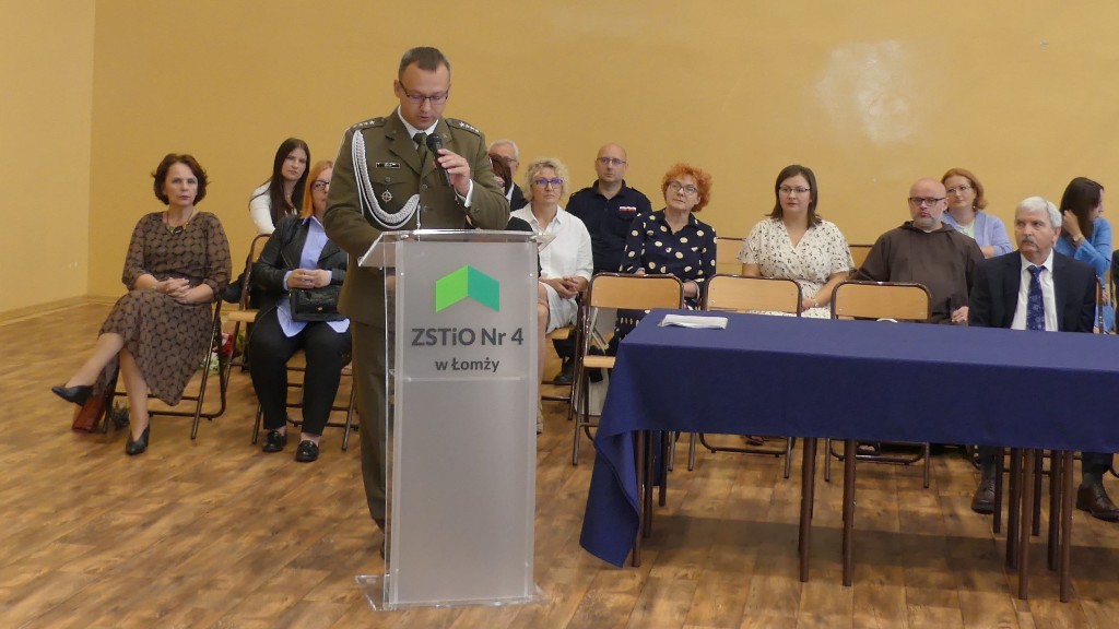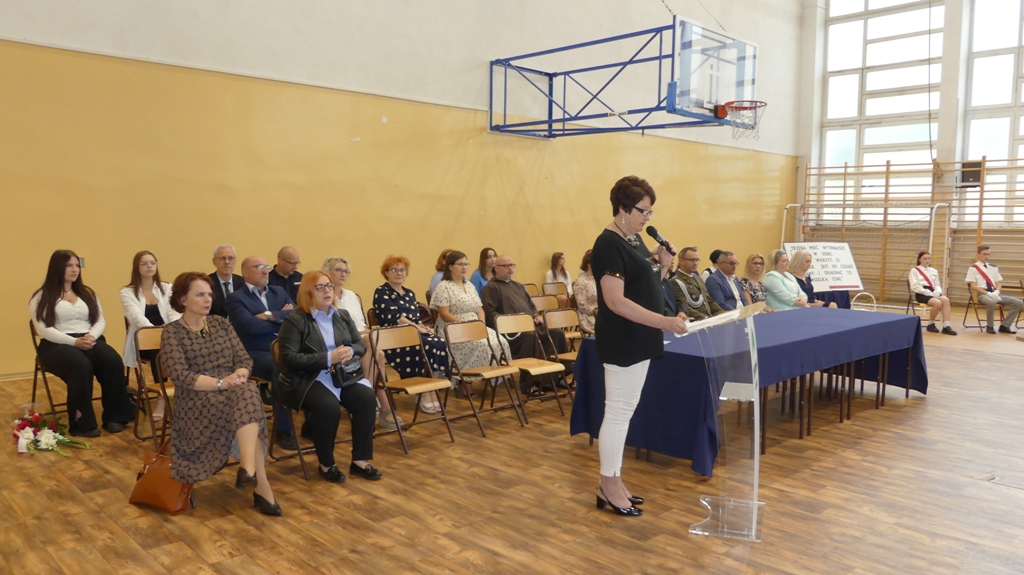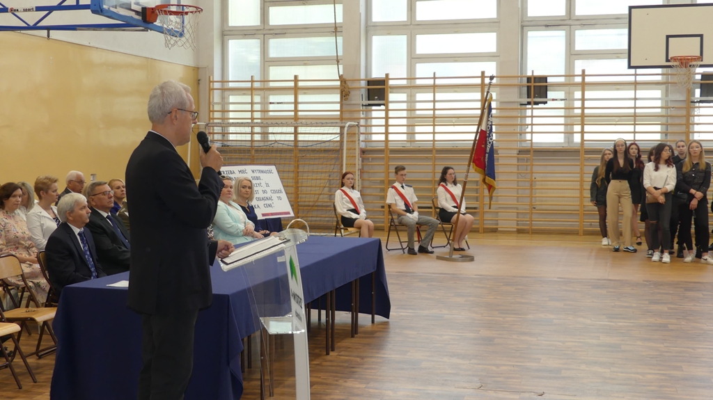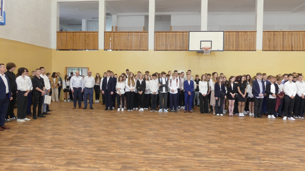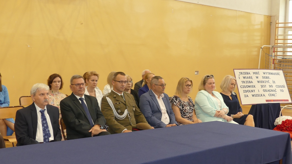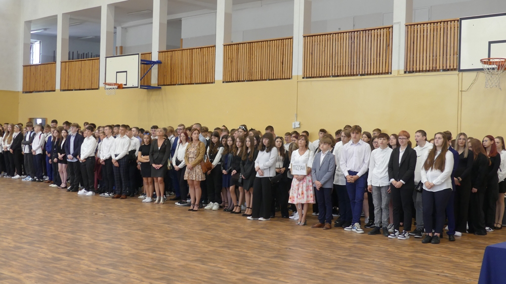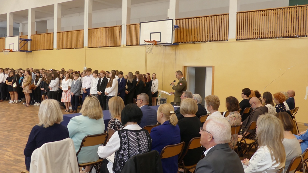W dniu 4 września w szkolnej hali sportowej odbyło się uroczyste rozpoczęcie roku szkolnego 2023/24. Zgromadzili się na nim uczniowie oraz nauczyciele naszej szkoły oraz zaproszeni goście . Uroczystość poprowadziła wicedyrektor szkoły pani Maria Gawryś, która skierowała do wszystkich słowa powitania. Pani Jolanta Wilczewska odczytała list Prezydenta Miasta Mariusza Chrzanowskiego skierowany do uczniów. Następnie list Dowódcy 1 Podlaskiej Brygady Obrony Terytorialnej pułkownika Mieczysława Gurgielewicza odczytał kapitan Piotr Duda. List Szefa Ośrodka Zamiejscowego w Białymstoku, Centralnego Wojskowego Centrum Rekrutacji - pułkownika Jarosława Kowalewskiego przedstawił pan Przemysław Chojnicki.