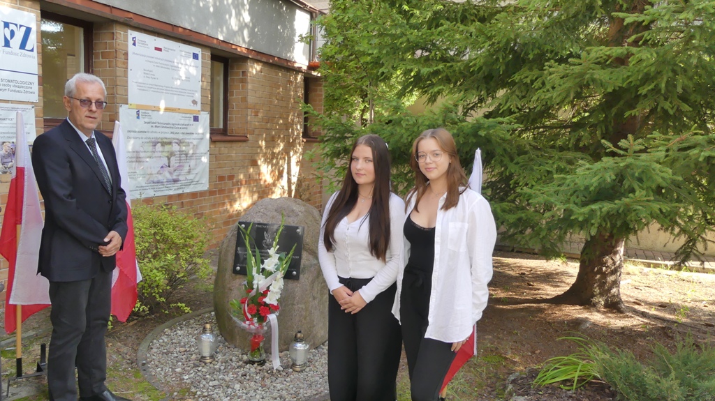 Pan Wiesław Czupryński w prelekcji nawiązał do mijającej 84 rocznicy agresji Niemiec hitlerowskich na Polskę, a delegacja młodzieży złożyła wiązankę biało-czerwonych kwiatów i zapaliła znicz przed tablicą pamiątkową Szkolnego Miejsca Pamięci.