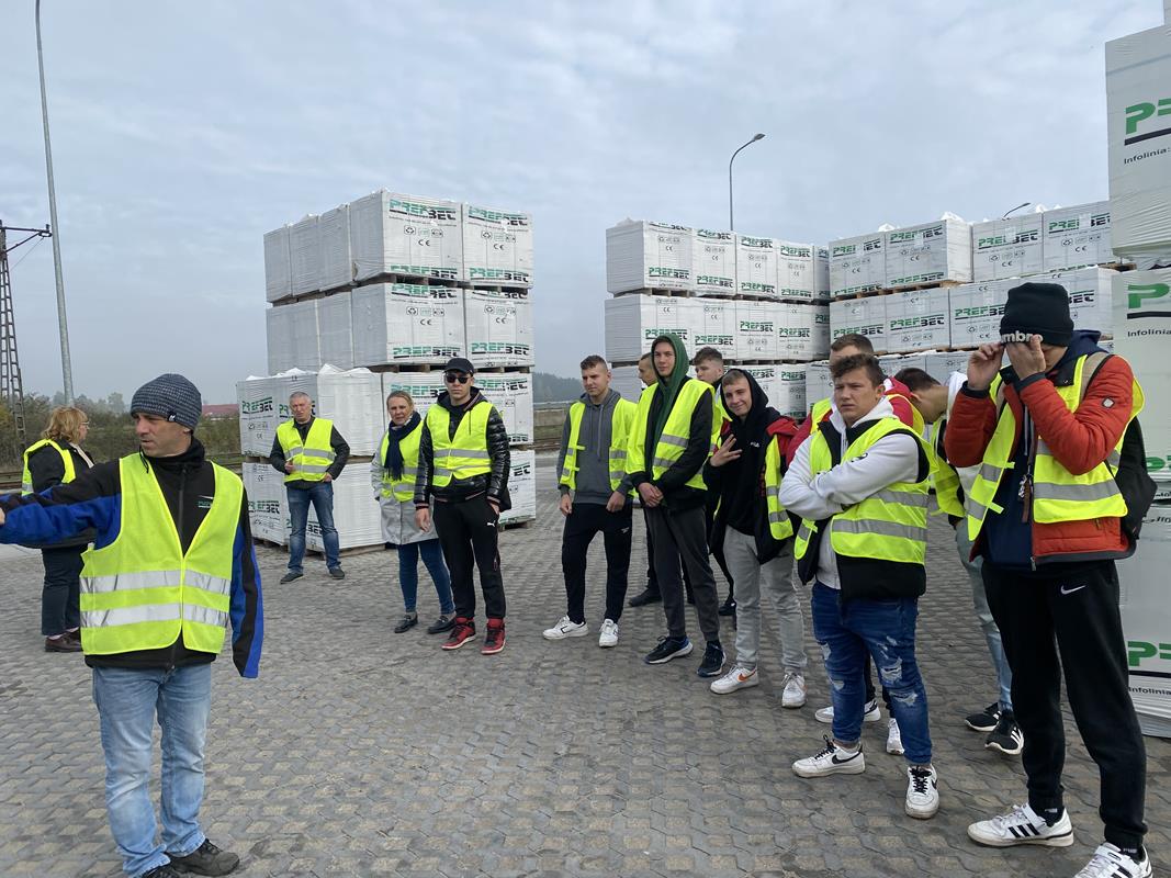 W dniu 24.10.2023r. grupa młodzieży z klasy 4aTB pod opieką nauczycieli P. Reginy Lewańczuk i P. Beaty Szymanowskiej uczestniczyła w wyjeździe edukacyjnym do Przedsiębiorstwa Produkcji Betonów PREFBET Sp. zoo w Śniadowie. Uczniowi poznawali nowe technologie produkcji betonu komórkowego, sylikatów, betonu towarowego i wyrobów betonowych. Przedstawiono młodzieży ofertę taniego i technologicznie prostego systemu budowy obiektów z betonu komórkowego. Po intensywnym zwiedzaniu Przedsiębiorstwa Prefbet i prelekcji na temat technologii wykonywania materiałów budowlanych, gospodarze firmy zorganizowali dla młodzieży poczęstunek. Wszyscy uczestnicy wyjazdu edukacyjnego otrzymali prezent- czapeczki z logo Prefbetu.