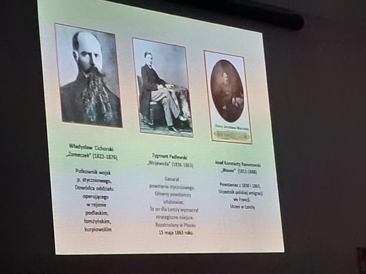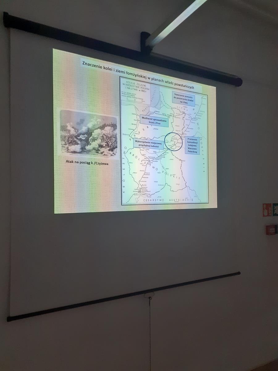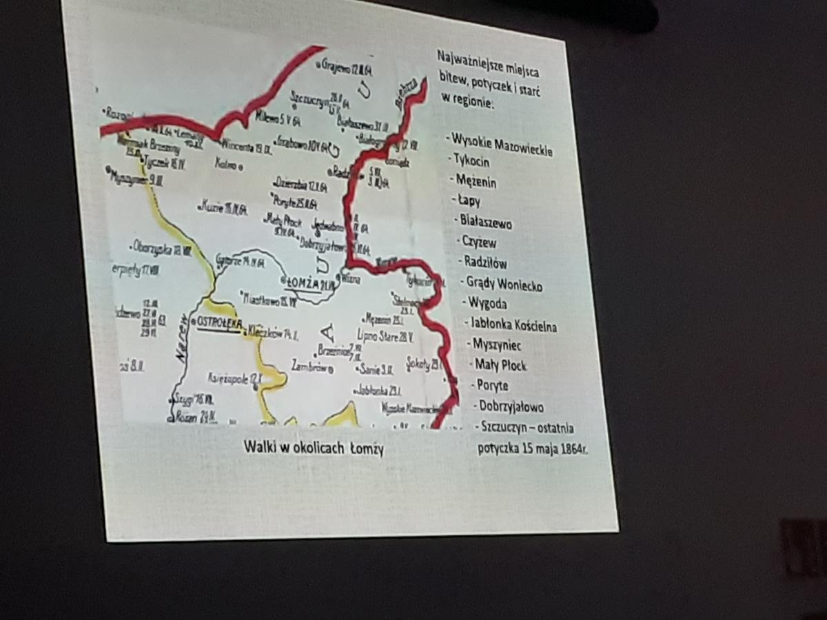 W dn. 08.11. uczniowie klasy 2 AP LO pod opieką p. A. Szymańskiej oraz p. W. Czupryńskiego uczestniczyli w wykładzie A. Sokołowskiego (z Muzeum Północno-Mazowieckiego) poświęconemu Powstaniu Styczniowemu na Ziemi Łomżyńskiej. Wykład był przeprowadzony w oparciu o interesującą prezentację zawierającą informacje o przywódcach oraz przebiegu powstania na naszych terenach. Była to inicjatywa naszego łomżyńskiego Muzeum do której zaproszono także i naszą szkołę.