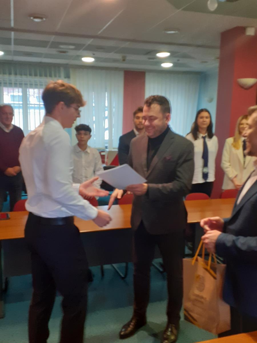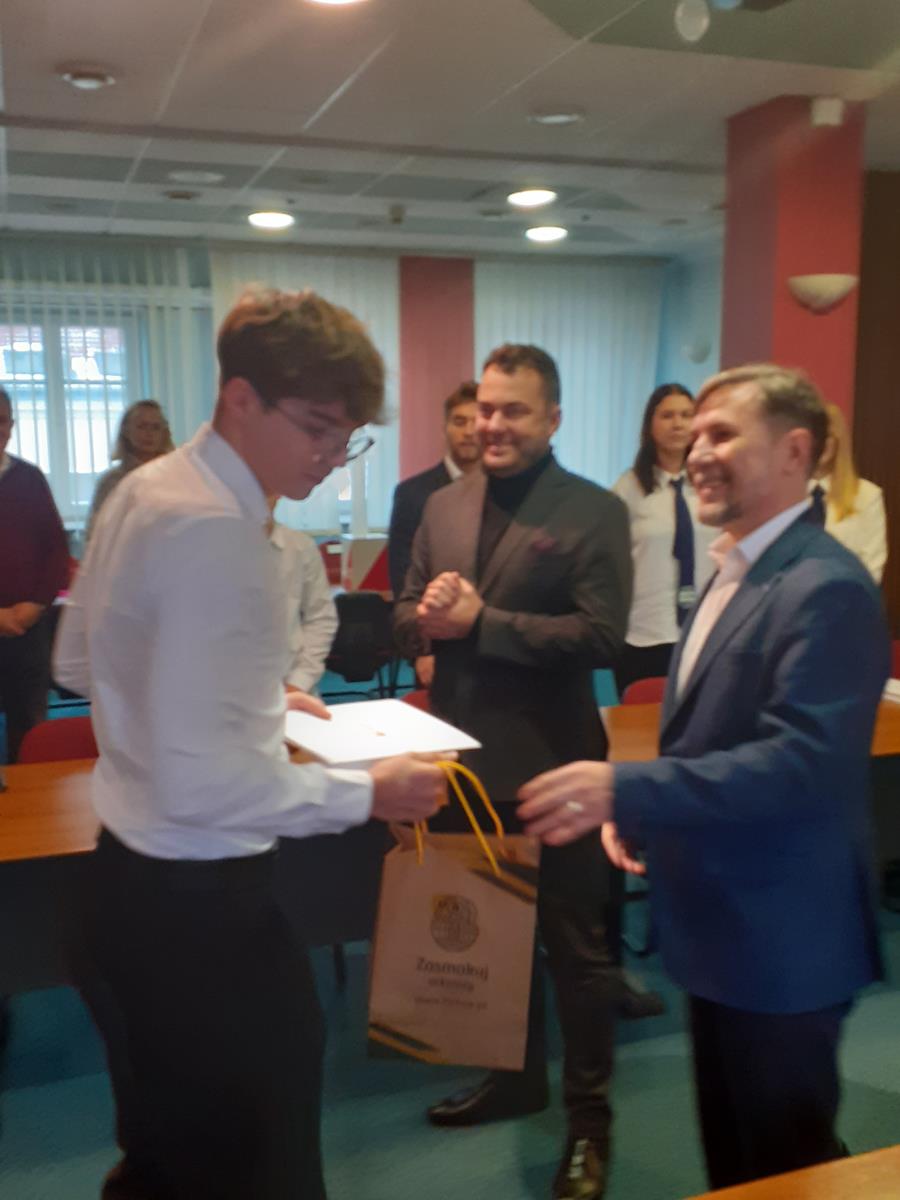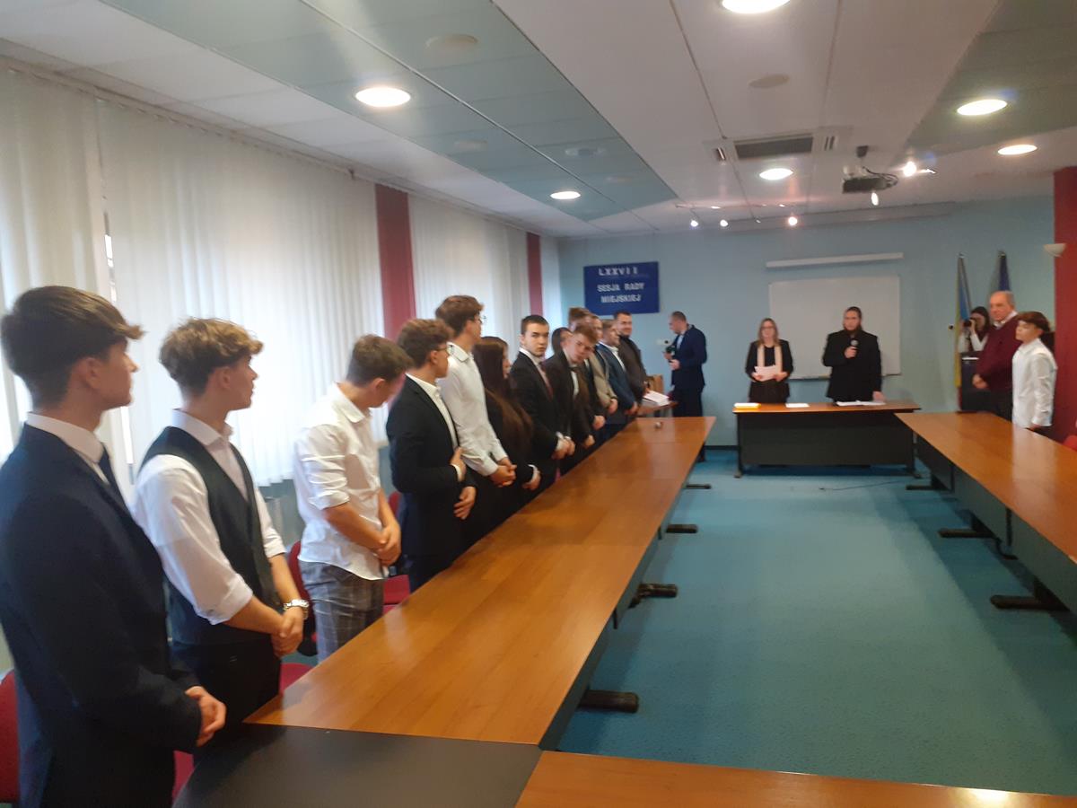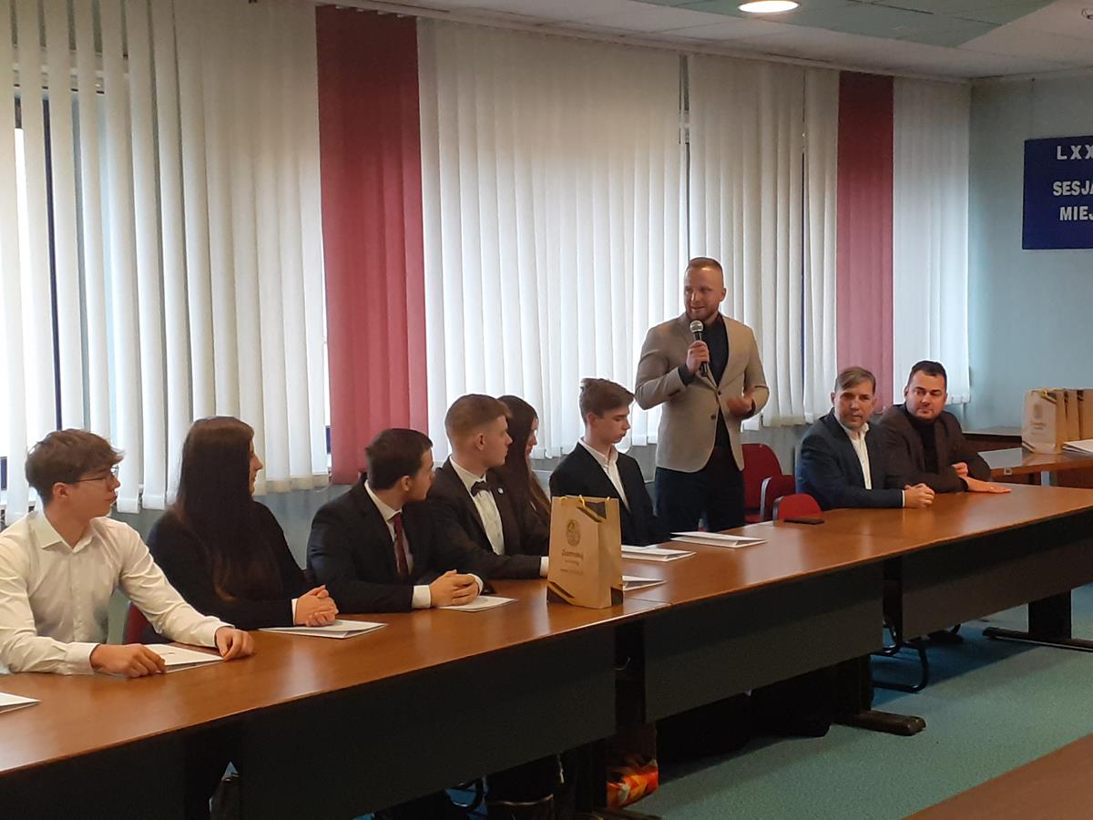 W dn. 23.11. w sali konferencyjnej Urzędu Miejskiego w Łomży odbyła się I sesja Młodzieżowej Rady Miasta Łomży połączona ze ślubowaniem radnych. Nasza Szkołę reprezentowali Maja Klimaszewska z kl. 2 PP oraz Dawid Wiśniewski z kl. 2 AP. Nasi radni pod opieką p W.Czupryńskiego złożyli ślubowanie przed Prezydentem Miasta p. M.Chrzanowskim oraz wzięli udział w sesji roboczej nowej rady. Obok fotorelacja z wydarzenia.