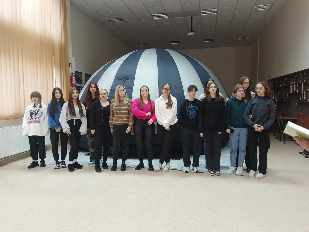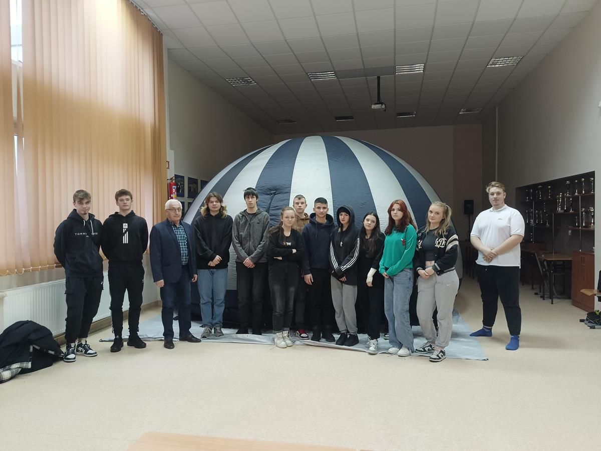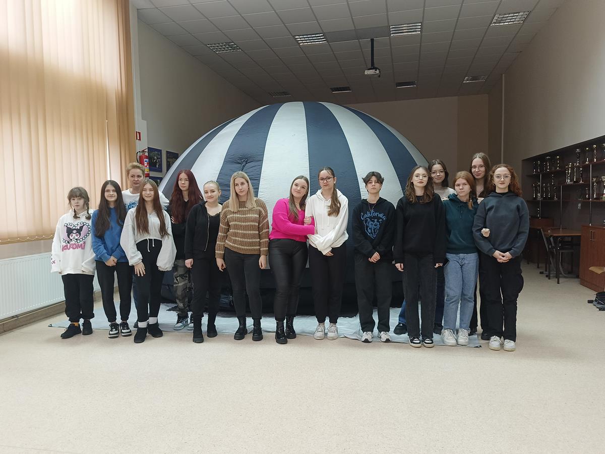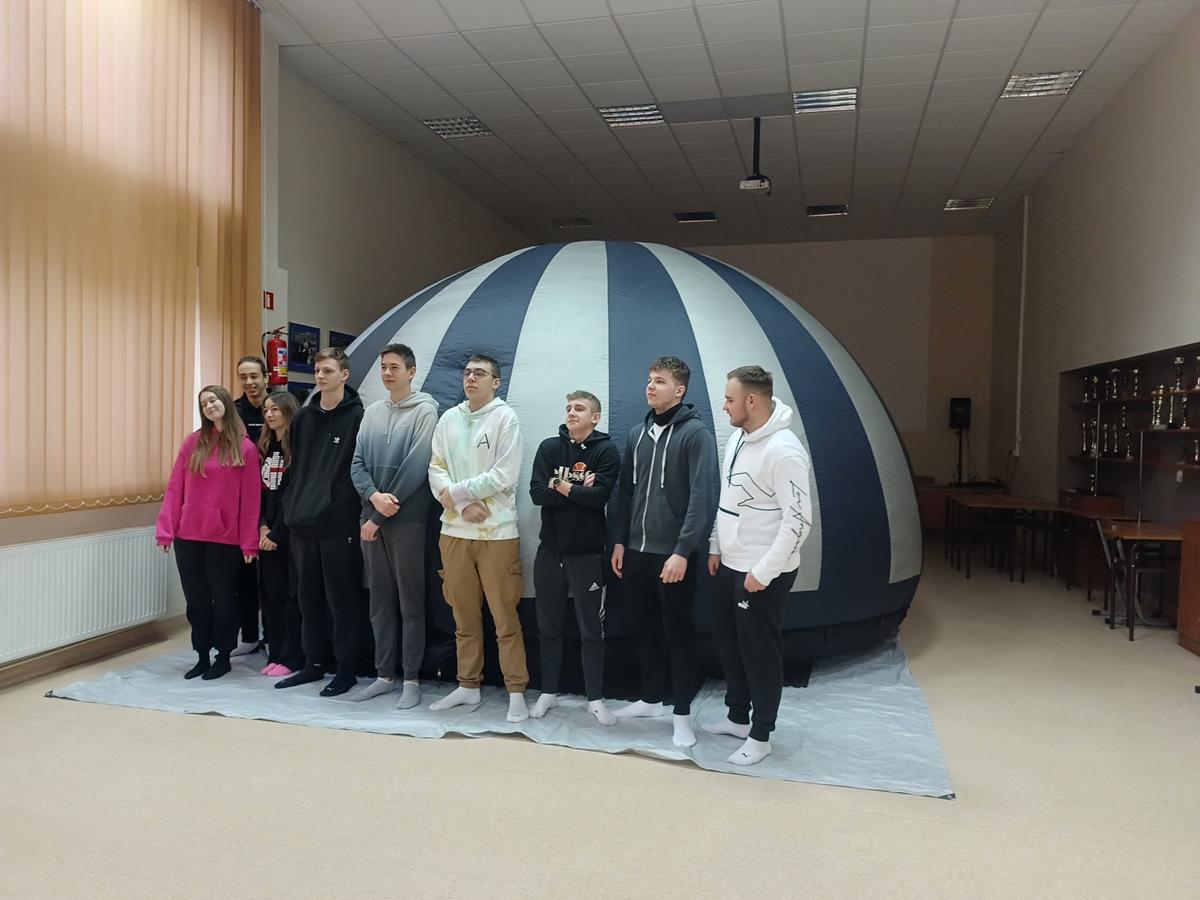 Celem kina sferycznego jest zainteresowanie uczniów nową, nietradycyjną formą kształcenia z zakresu astronomii. Uczestnicy dużo szybciej przyswajają i zapamiętują wiedzę, przekazywaną poprzez atrakcyjne widoki oraz niesamowite efekty dźwiękowe. Uczniowie w 20 osobowych grupach wchodzą do specjalnej kopuły w której pod kątem 360° zostaje wyświetlany film, który jest wybrany przez organizatorów. W tym roku zostały zaprezentowane 3 filmy o tytułach: „W poszukiwaniu ciemnej materii”, „Grawitacja”, „Astronauta”. Uczniowie z klas 2PP, 2AP,1PP,4Tb,1AP,3Tb i 4Tż wychodzili z seansu podekscytowani oraz z uśmiecham na twarzy. Ta nietypowa forma lekcji fizyki pokazała nam jak łatwo można przyswoić wiedzę dzięki obejrzanym filmom.