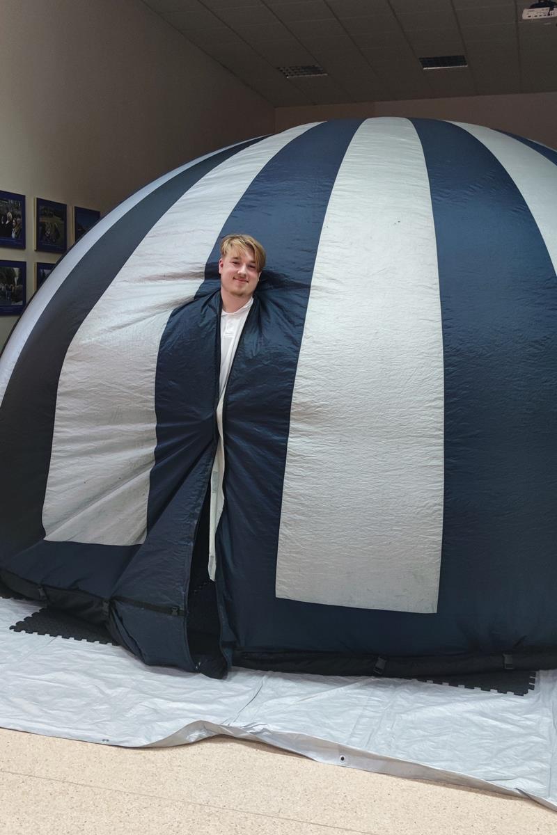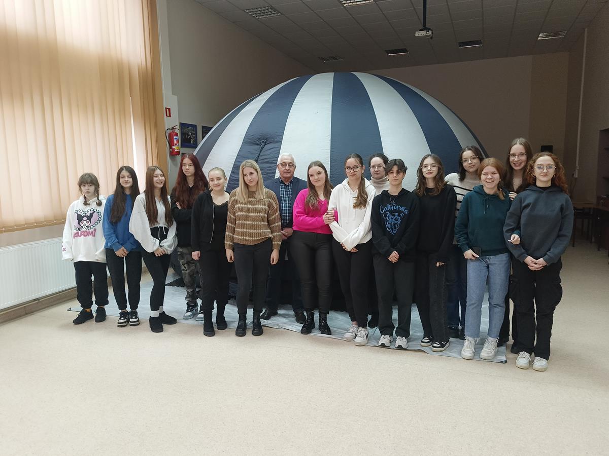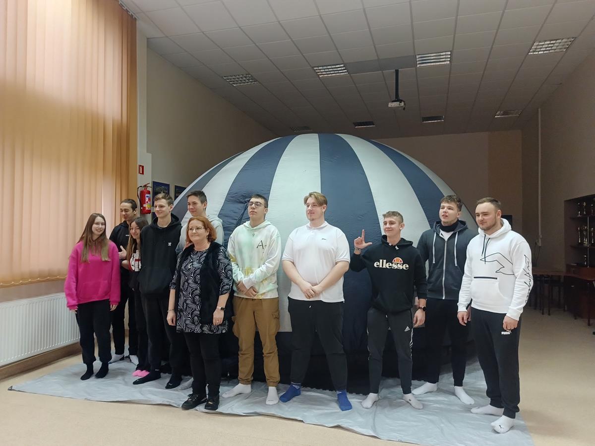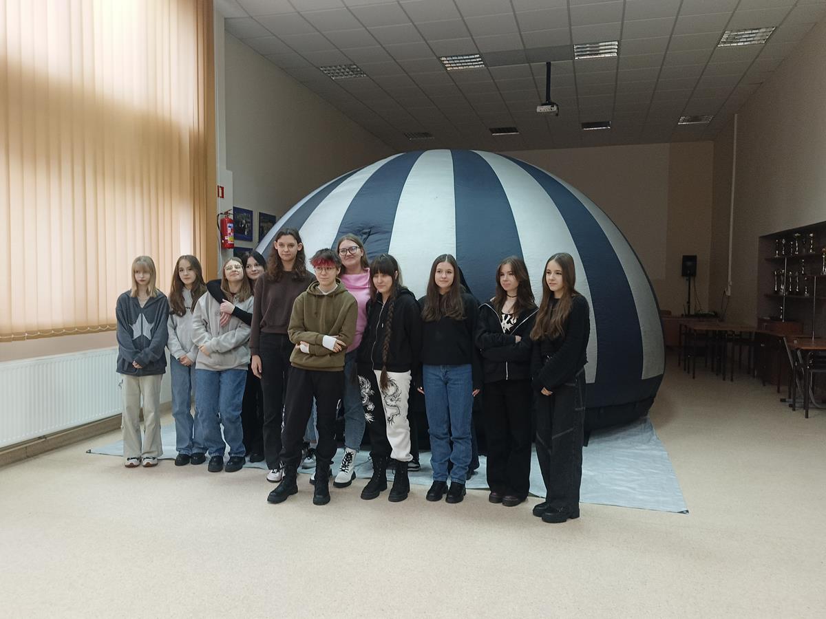 Celem kina sferycznego jest zainteresowanie uczniów nową, nietradycyjną formą kształcenia z zakresu astronomii. Uczestnicy dużo szybciej przyswajają i zapamiętują wiedzę, przekazywaną poprzez atrakcyjne widoki oraz niesamowite efekty dźwiękowe. Uczniowie w 20 osobowych grupach wchodzą do specjalnej kopuły w której pod kątem 360° zostaje wyświetlany film, który jest wybrany przez organizatorów. W tym roku zostały zaprezentowane 3 filmy o tytułach: „W poszukiwaniu ciemnej materii”, „Grawitacja”, „Astronauta”. Uczniowie z klas 2PP, 2AP,1PP,4Tb,1AP,3Tb i 4Tż wychodzili z seansu podekscytowani oraz z uśmiecham na twarzy. Ta nietypowa forma lekcji fizyki pokazała nam jak łatwo można przyswoić wiedzę dzięki obejrzanym filmom.