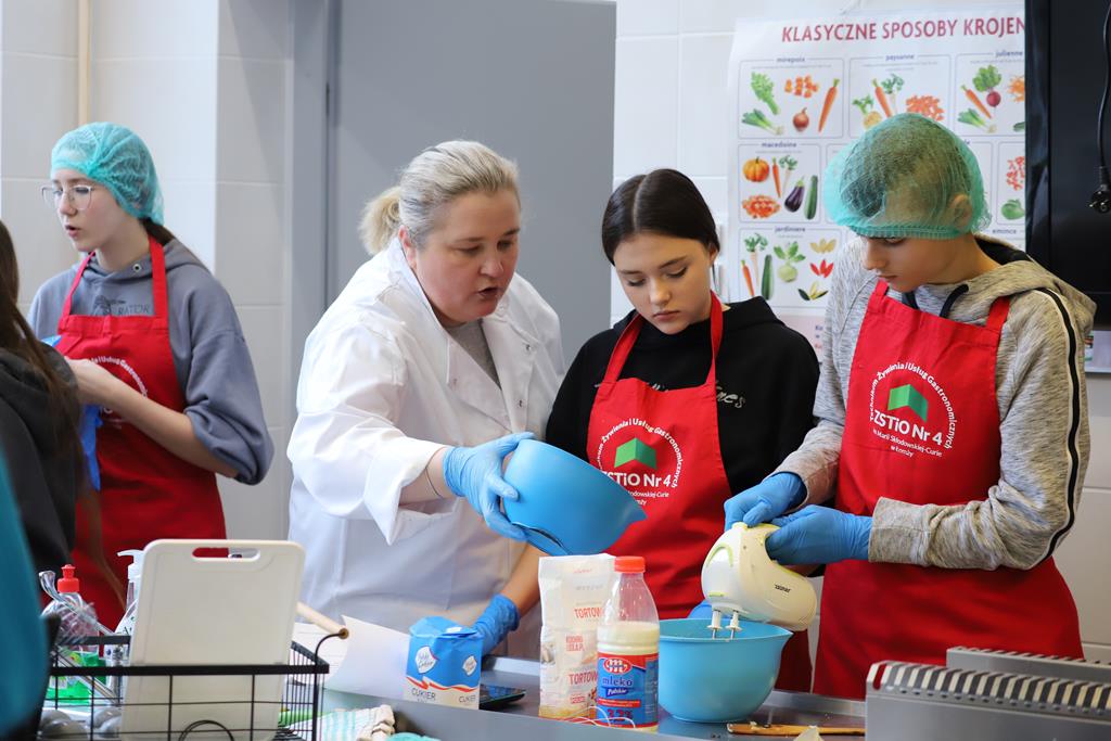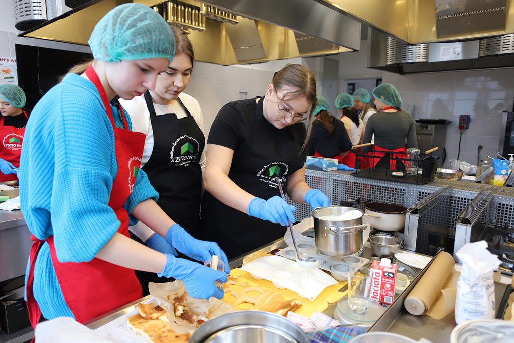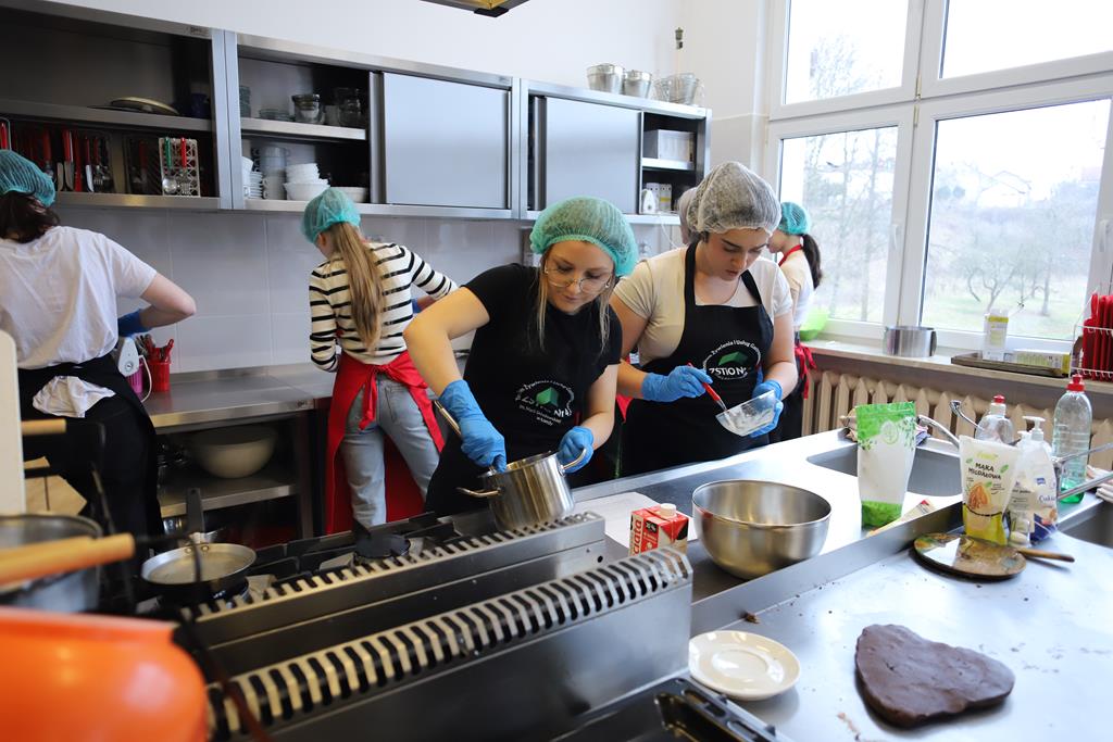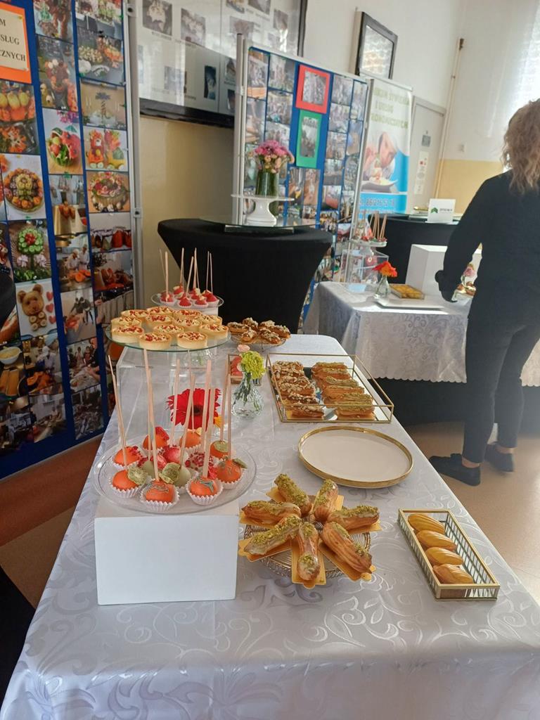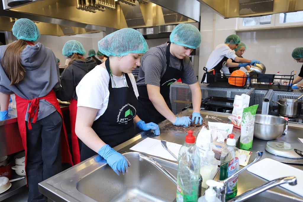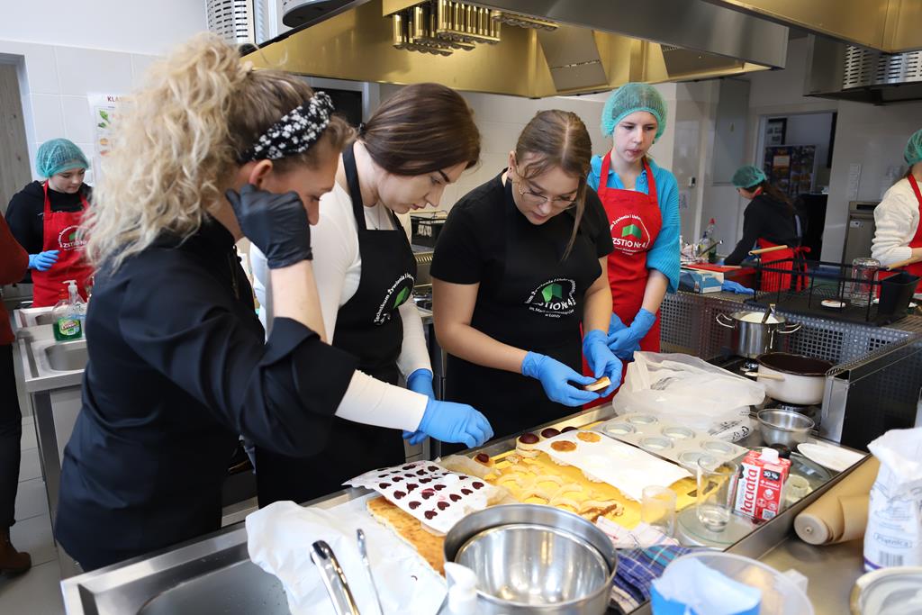 W dniu 14.03.2024r. odbyły się w naszej szkole Warsztaty Cukiernicze, w ramach których uczniowie przygotowywali wyroby na tzw. „ candi bar”. Były to między innymi monoporcje musowe, eklerki, popsikle i wiele innych wyrobów. Dodatkowo uczniowie uczestniczyli w produkcji tortu owocowego.