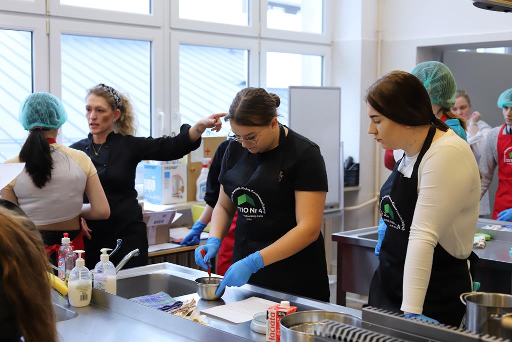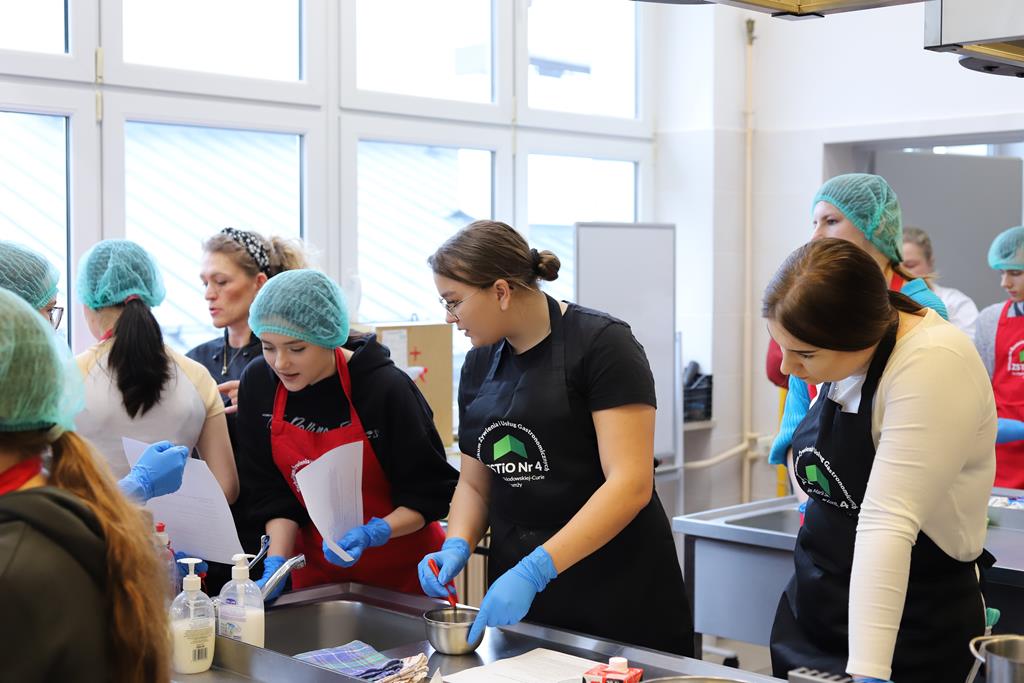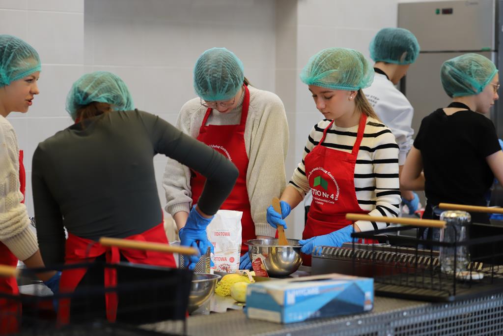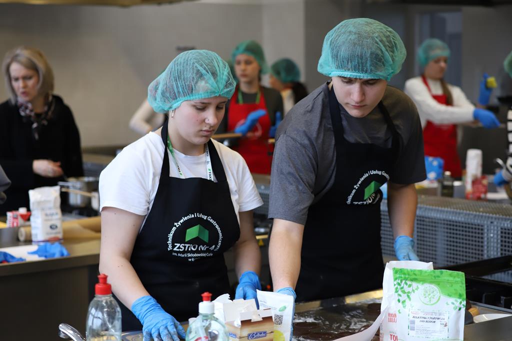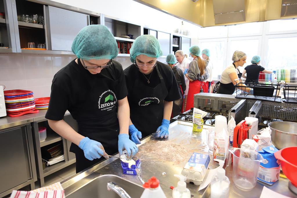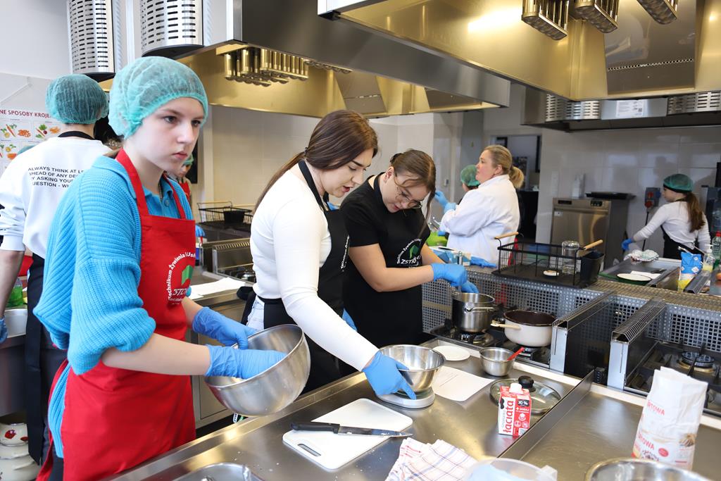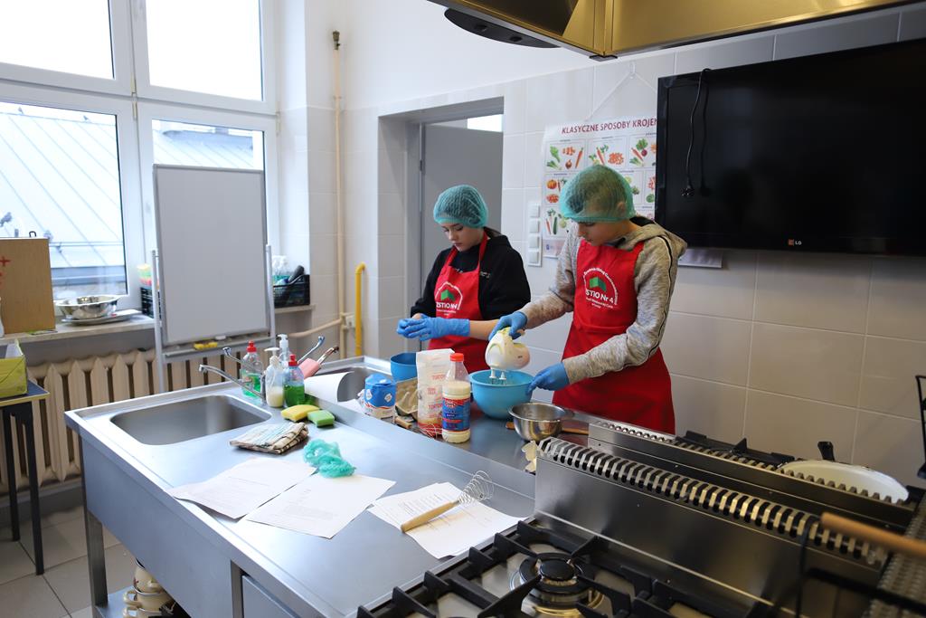 W dniu 14.03.2024r. odbyły się w naszej szkole Warsztaty Cukiernicze, w ramach których uczniowie przygotowywali wyroby na tzw. „ candi bar”. Były to między innymi monoporcje musowe, eklerki, popsikle i wiele innych wyrobów. Dodatkowo uczniowie uczestniczyli w produkcji tortu owocowego.