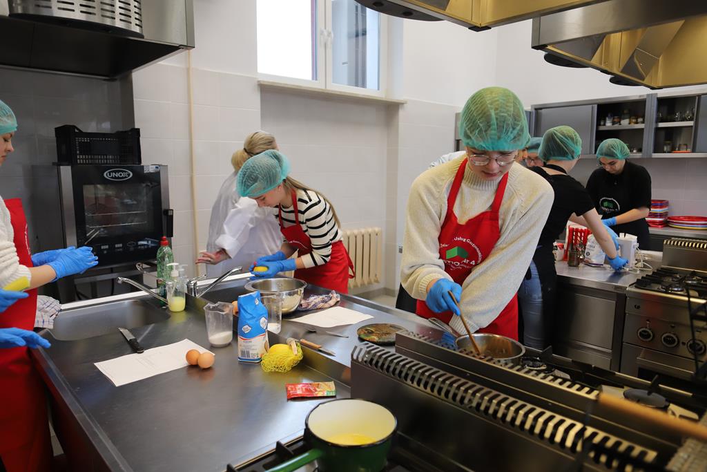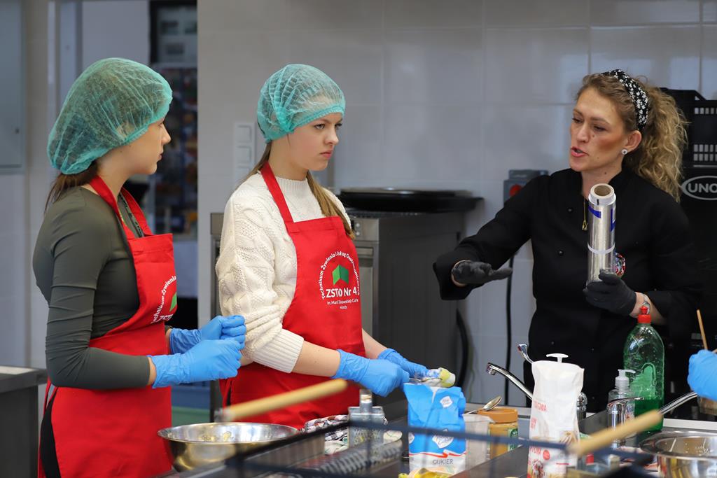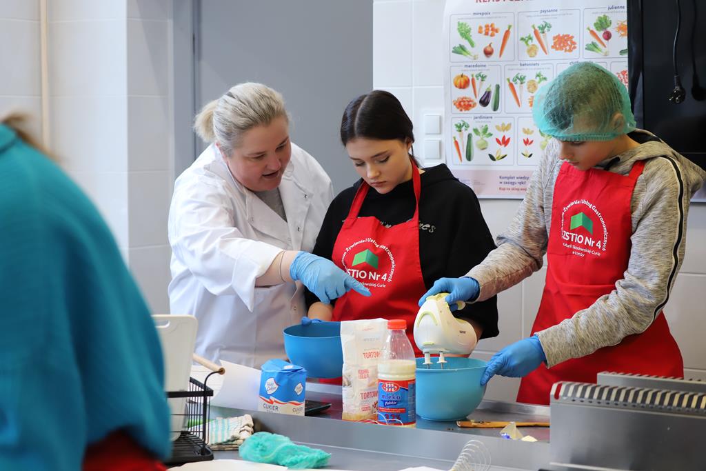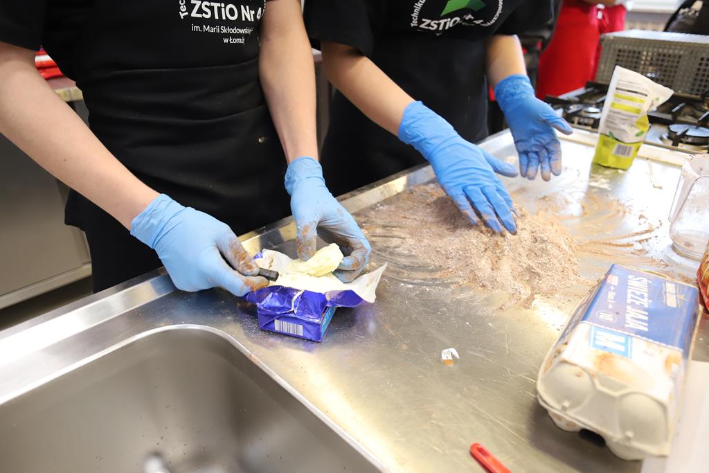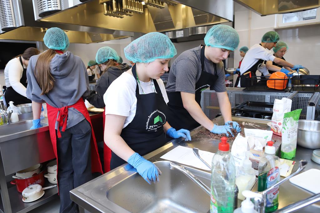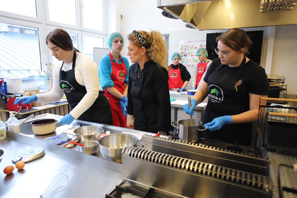 W dniu 14.03.2024r. odbyły się w naszej szkole Warsztaty Cukiernicze, w ramach których uczniowie przygotowywali wyroby na tzw. „ candi bar”. Były to między innymi monoporcje musowe, eklerki, popsikle i wiele innych wyrobów. Dodatkowo uczniowie uczestniczyli w produkcji tortu owocowego.