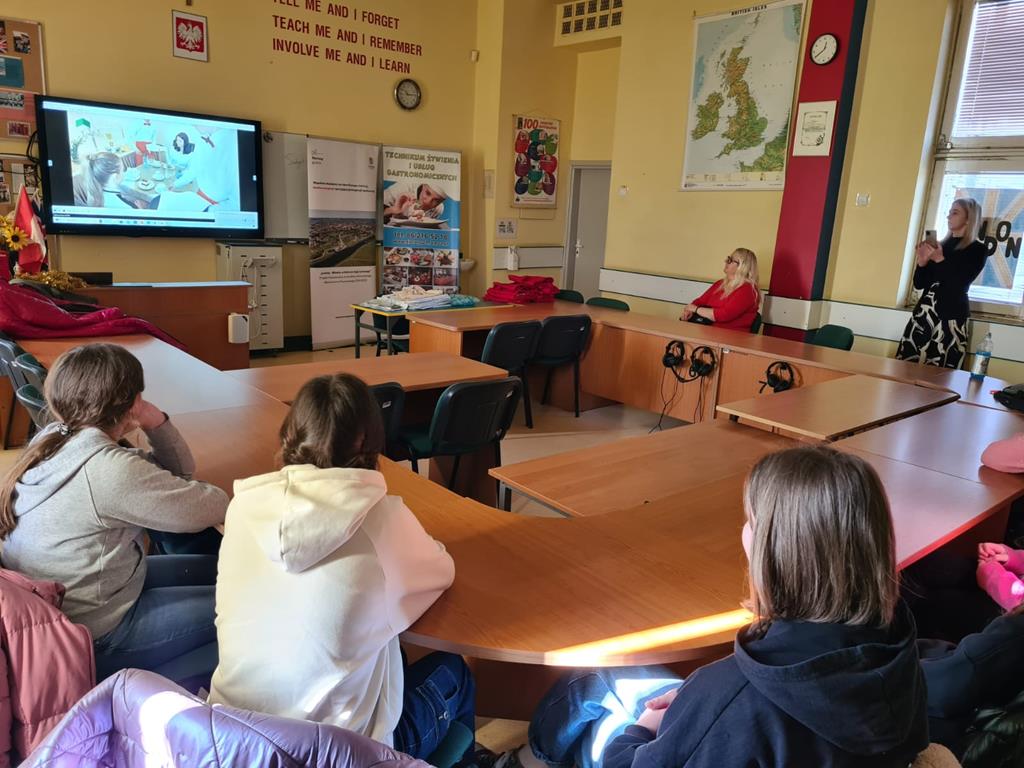 Uczniowie obejrzeli także film promujący kierunki zawodowe proponowane przez naszą szkołę, a na zakończenie spotkania otrzymali materiały reklamowe dotyczące kształcenia zawodowego.