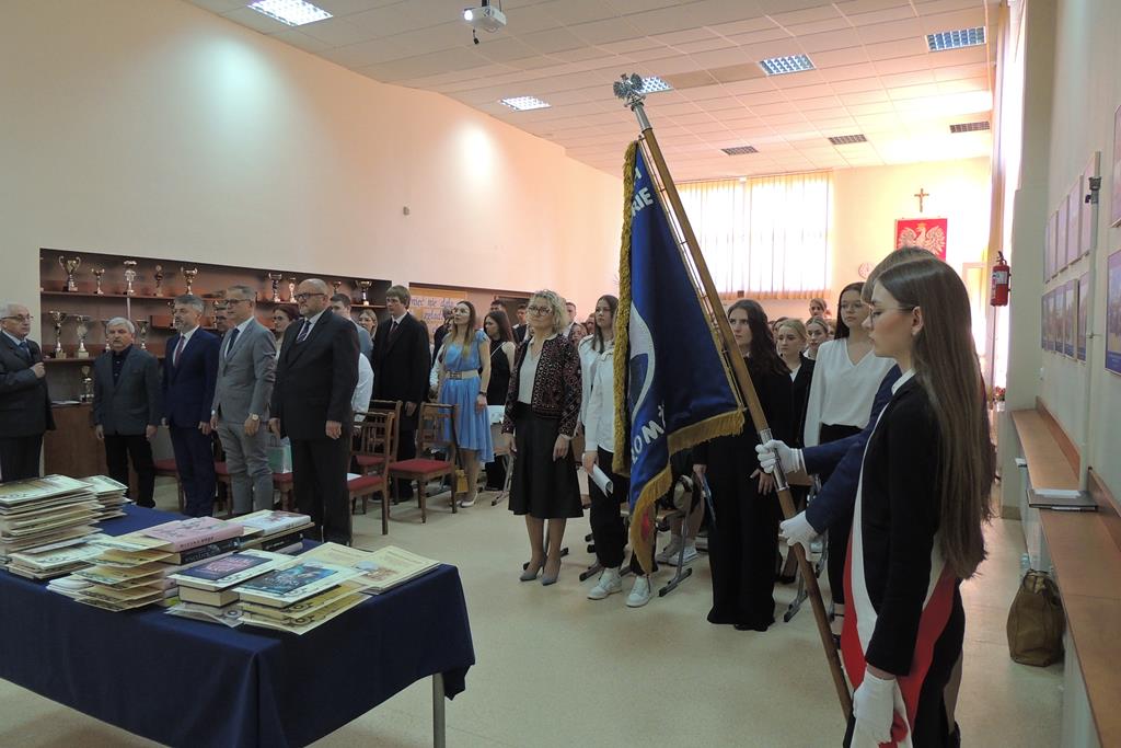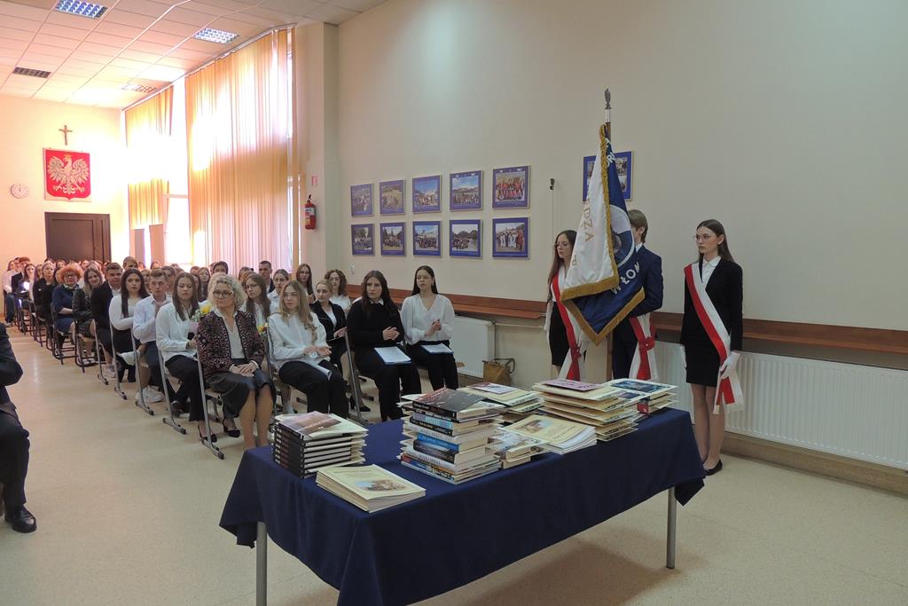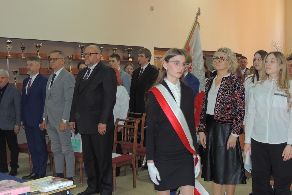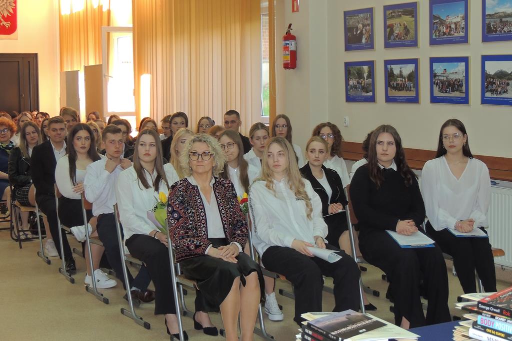 Wicedyrektor szkoły, Pani Maria Gawryś, powitała wszystkich zebranych. Szczególnie serdecznie zwróciła się do zgromadzonej na sali młodzieży klas maturalnych: