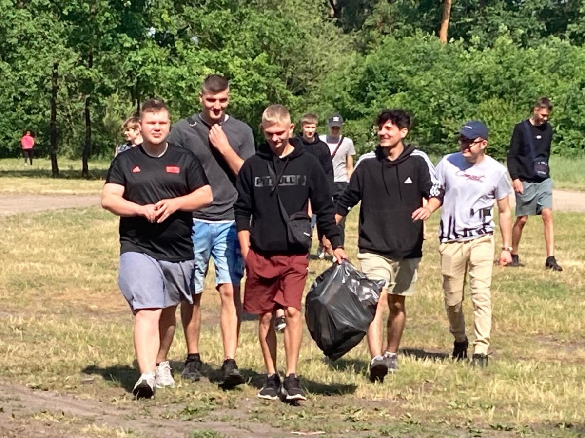 Z okazji zbliżającego się Dnia Dziecka 24 maja klasy wielozawodowe 2ZZ I 3ZZ Branżowej Szkoły I Stopnia z wychowawcą Elżbietą Bednarczyk i wychowawcami Hufca Pracy w Łomży wybrały się pieszo do Lasu Jednaczewskiego. Spotkanie integracyjne rozpoczęło się od wykładu Pana Leśniczego na temat zasad odpowiedzialnego zachowania się w lesie. Kolejnym punktem programu było sprzątanie lasu. Pomimo wielkiego upału i chmar komarów uczniowie podołali wyznaczonemu zadaniu. W nagrodę za ciężką pracę Pan leśniczy przygotował wspaniałe ognisko, na którym młodzież piekła kiełbaski, a na deser zajadaliśmy się babeczkami i pączkami. I w tak miłej atmosferze spędziliśmy piękny majowy dzień.
