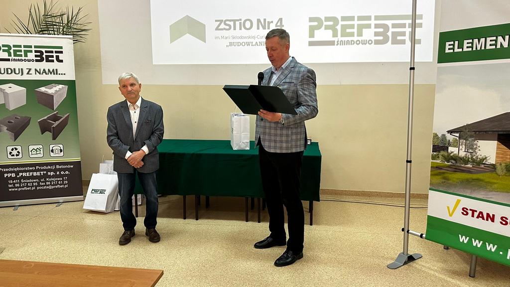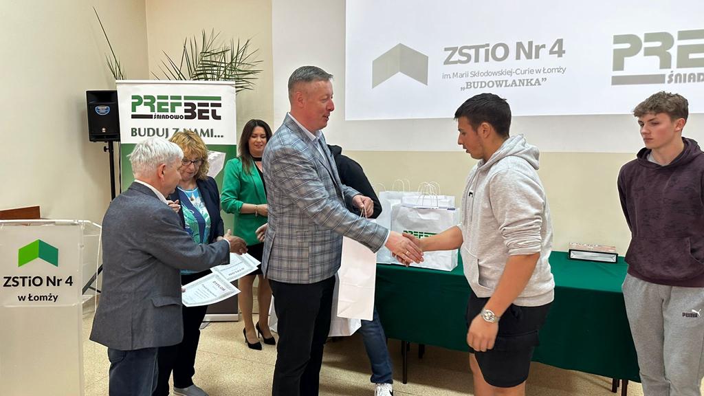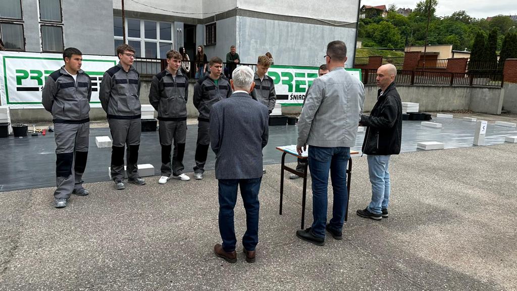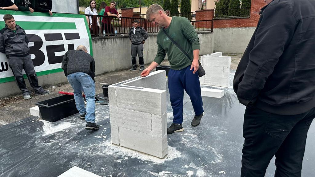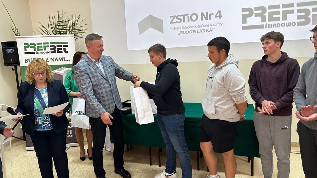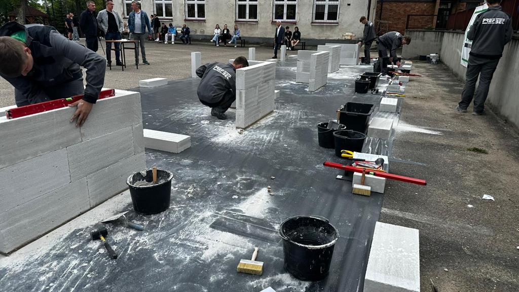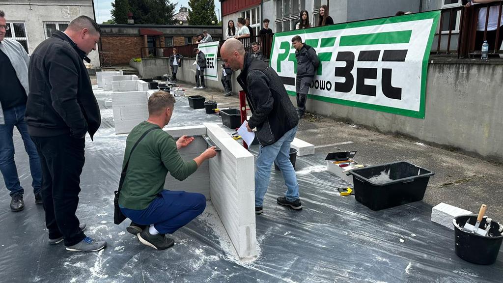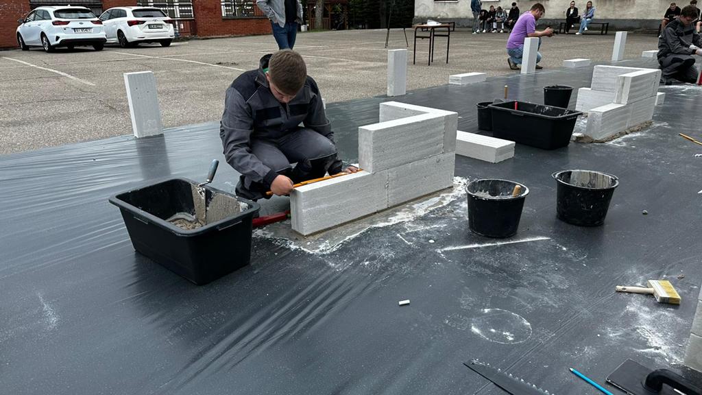 22 maja 2025 roku w Zespole Szkół Technicznych i Ogólnokształcących Nr 4 odbyła się piętnasta jubileuszowa edycja konkursu budowlanego „Muruj z Prefbetem”. Do naszej szkoły przybyli uczniowie z zaprzyjaźnionych szkól budowlanych. Celem konkursu było zapoznanie z technologią murowania ścian z bloczków gazobetonowych i innych elementów konstrukcyjnych produkowanych przez sponsora konkursu firmę PREFBET – ŚNIADOWO. W tym roku w konkursie uczestniczyło sześć szkół: ZSZ Nr 5 w Białymstoku, ZS Nr 1 w Bielsku Podlaskim, ZSZ Nr 2 w Ostrołęce, CKZ w Ełku, ZS nr 1 w Ostrowi Mazowieckiej i ZSTiO Nr 4 w Łomży.