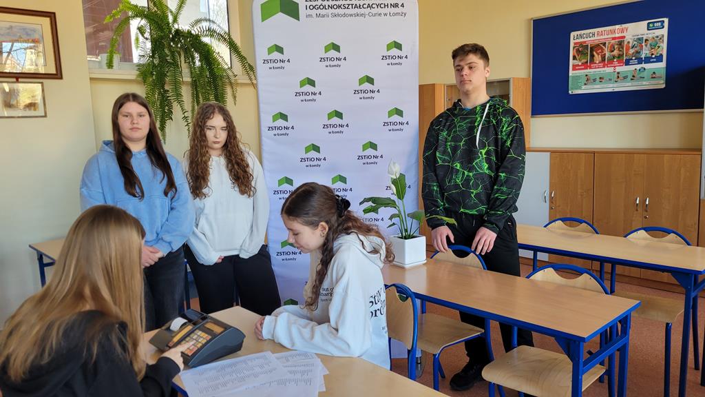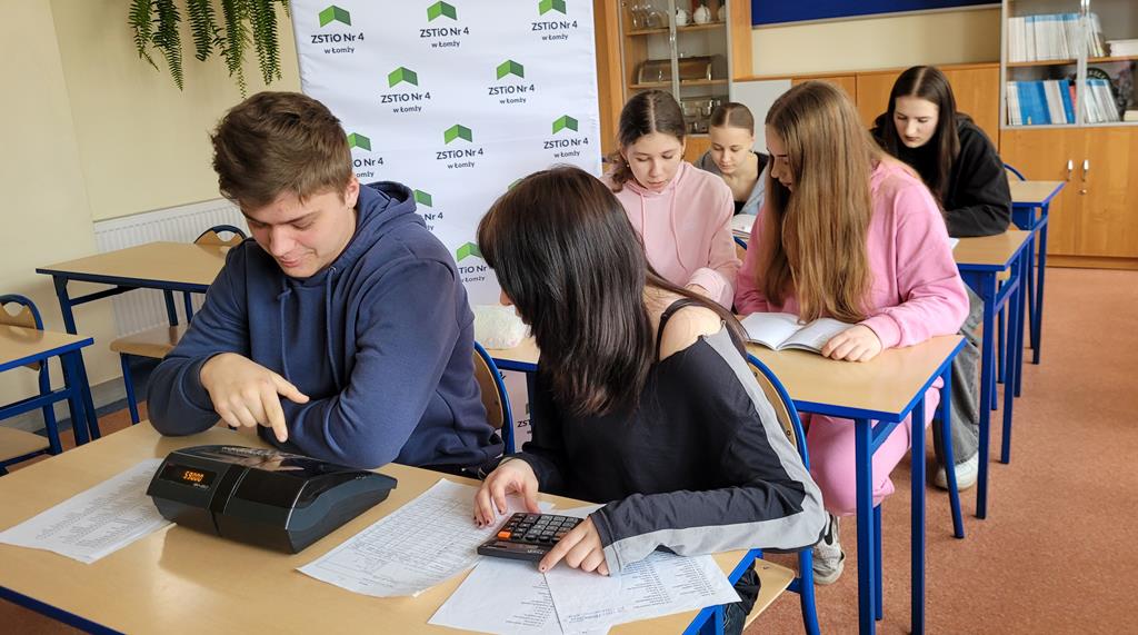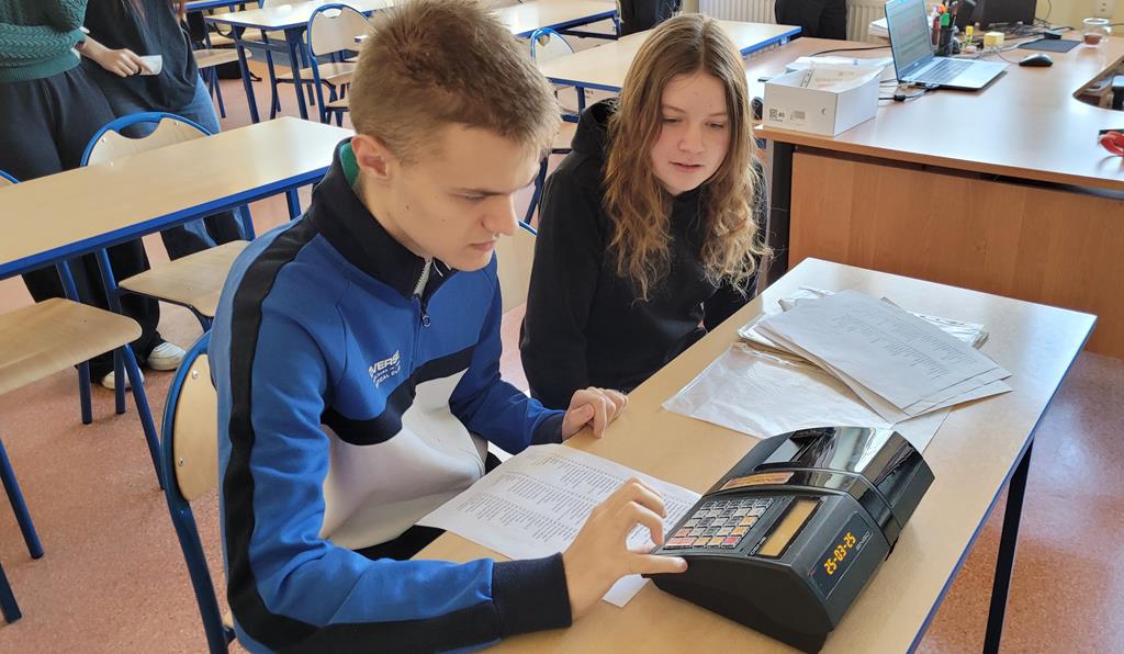 W klasie 2 i 3 technik hotelarstwa w ramach warsztatów branżowych przeprowadzono zajęcia z obsługi kasy fiskalnej. Podstawowym celem było zapoznanie uczniów z procesem rejestrowania transakcji sprzedaży towarów i usług hotelowych, takich jak: nocleg, wyżywienie oraz dodatkowe usługi hotelarskie. Omówiono podstawowe zasady obsługi kasy fiskalnej, które są niezbędne w codziennej pracy w recepcji hotelowej i restauracji. Warsztaty zakończyły się symulacją pełnego procesu rozliczenia pobytu gościa przez wystawienie paragonów, aż po finalne rozliczenie płatności. Dzięki tym zajęciom uczniowie zyskali umiejętności, które będą niezbędne w ich przyszłej pracy zawodowej, zwłaszcza w kontekście efektywnej obsługi kas fiskalnych i prawidłowego rozliczania usług hotelowych.