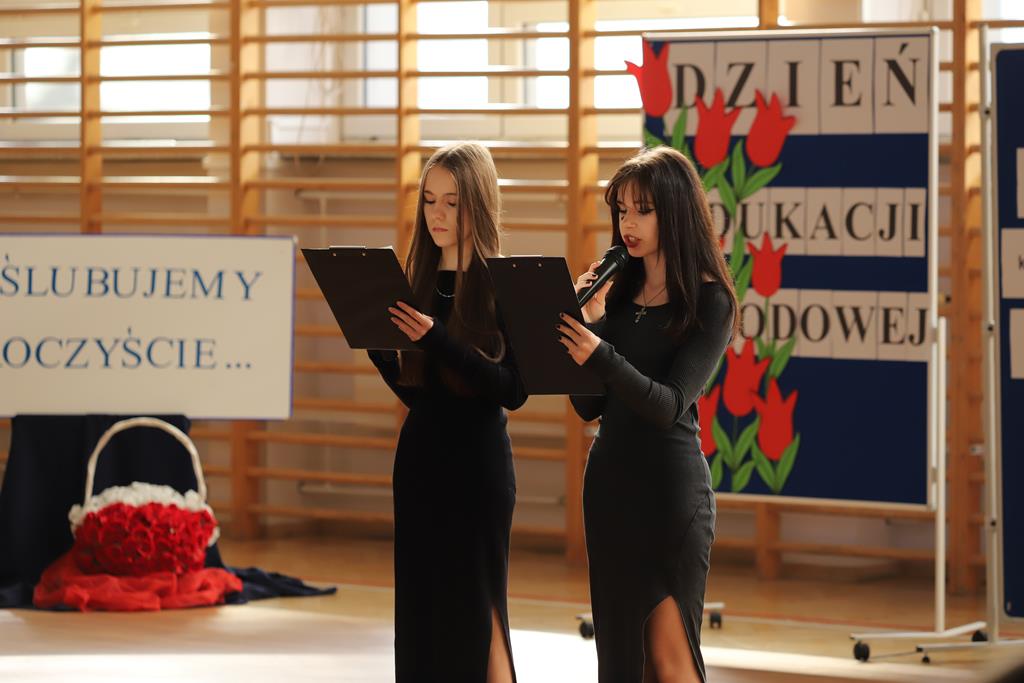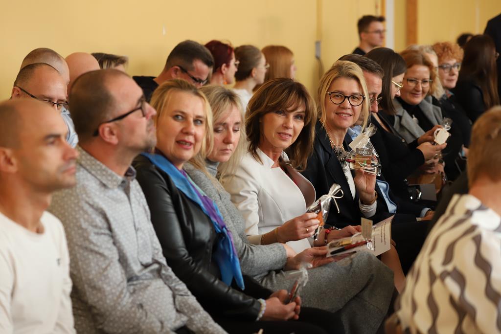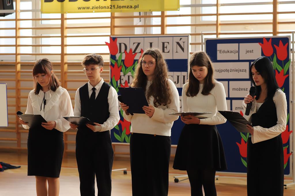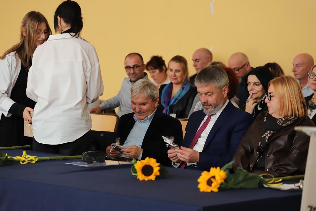 Po uroczystym ślubowaniu, rozpoczęła się druga część spotkania związana z Dniem Nauczyciela. Dyrektor, Pan Artur Ciborowski, wyróżnił swoimi nagrodami 15 nauczycieli oraz 6 innych pracowników szkoły. Młodzież, pod kierunkiem Pani Aleksandry Janowicz, przygotowała program słowno- muzyczny, poprzez który uczniowie wyrazili wdzięczność i szacunek swoim wychowawcom i nauczycielom oraz przekazali im ciepłe życzenia.