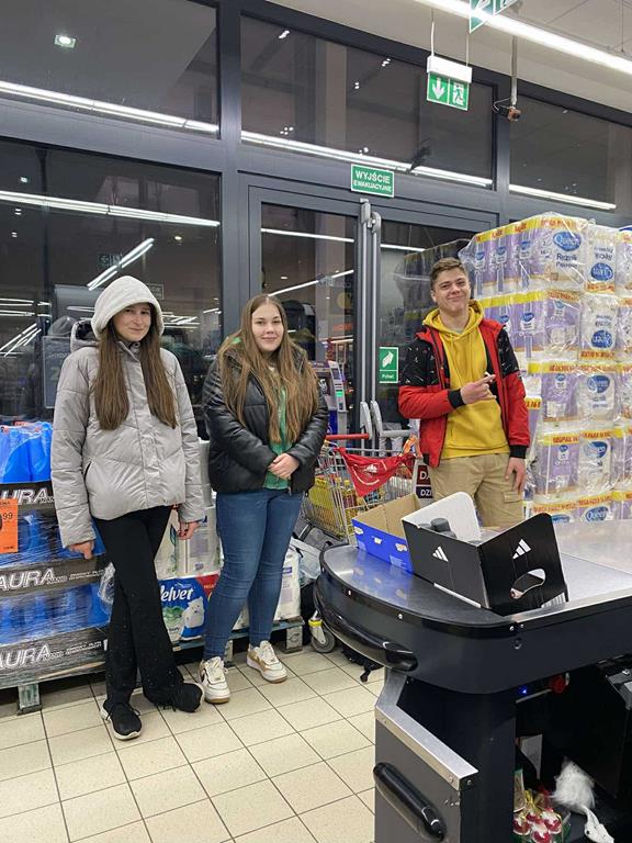 W ramach akcji uczniowie pełnili dyżury w lokalnych sklepach, zachęcając klientów do wsparcia zbiórki. Zbieraliśmy produkty spożywcze z długim terminem ważności, takie jak mąka, cukier, makaron, konserwy, olej czy słodycze. Dzięki zaangażowaniu zarówno wolontariuszy, jak i darczyńców, udało się zgromadzić znaczącą ilość żywności, która zostanie przekazana rodzinom wielodzietnym, seniorom i osobom samotnym w naszej okolicy.