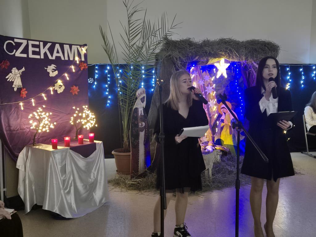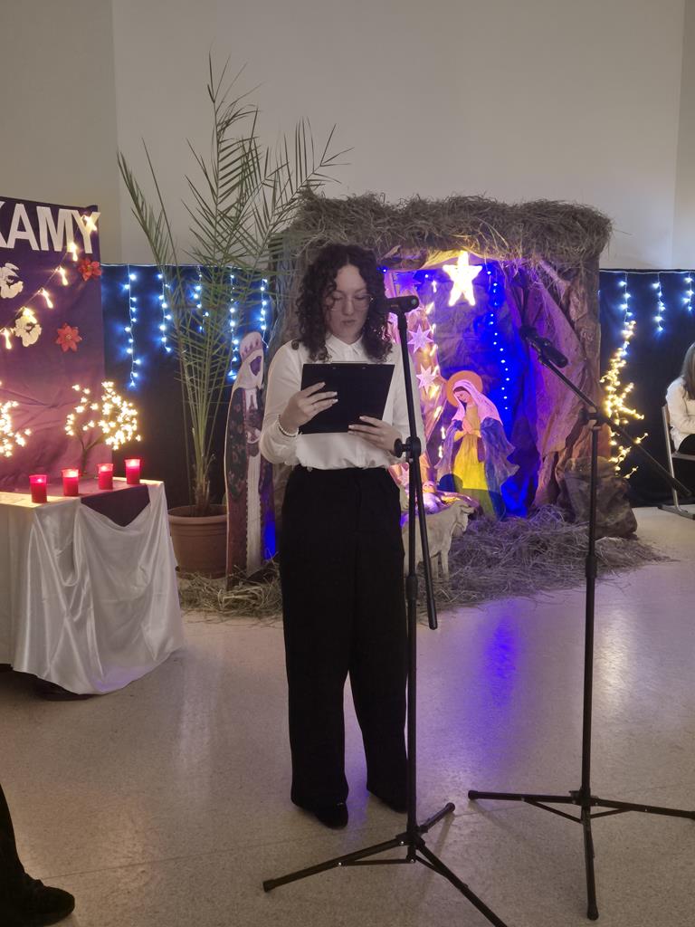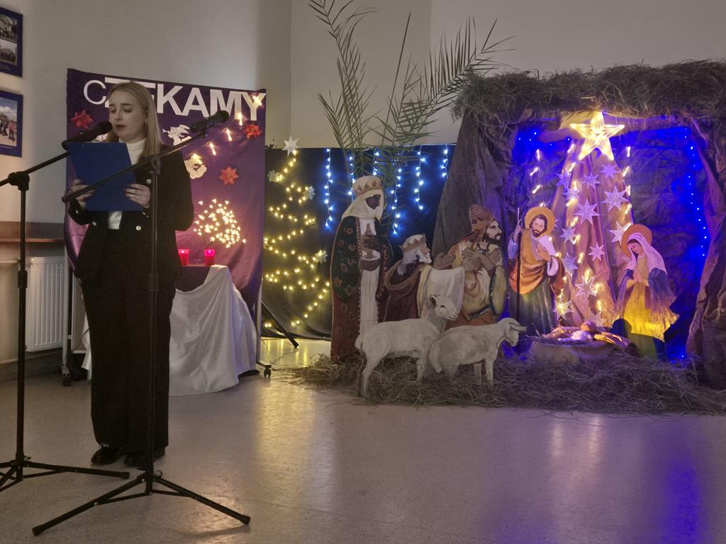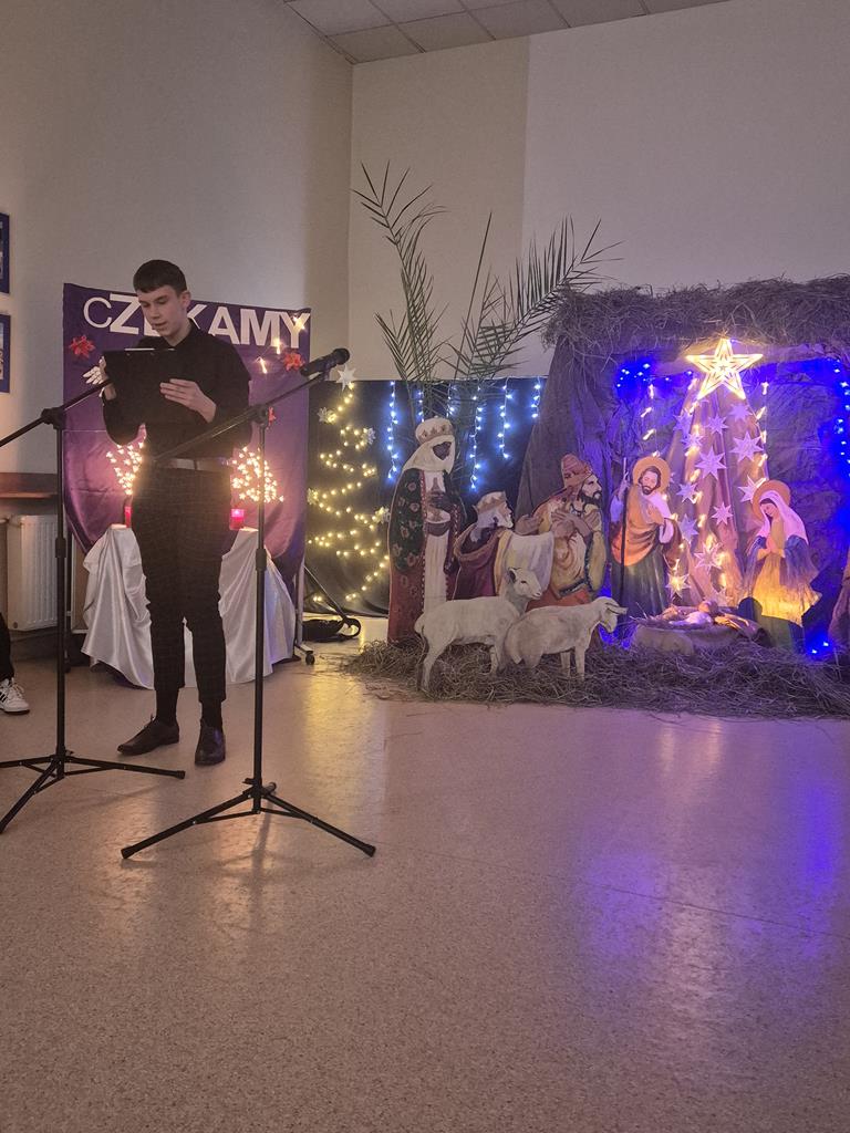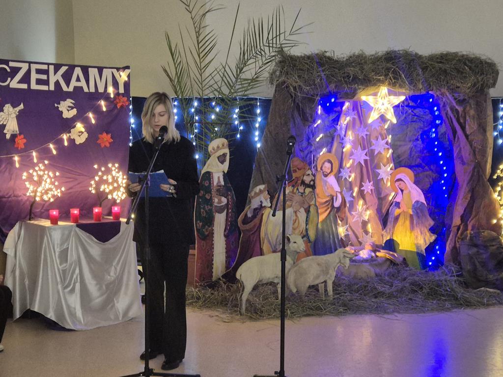 Uczniowie z wielkim zaangażowaniem odczytywali fragmenty Ewangelii, wcielając się w role biblijnych postaci. Sceny takie jak Zwiastowanie, podróż Maryi i Józefa do Betlejem czy pokłon pasterzy zostały pięknie uzupełnione tradycyjnymi kolędami, które włączyły do wspólnego świętowania całą społeczność szkolną.