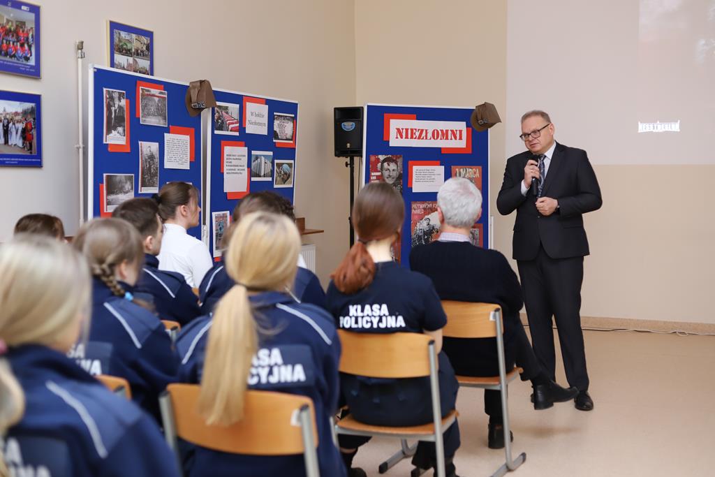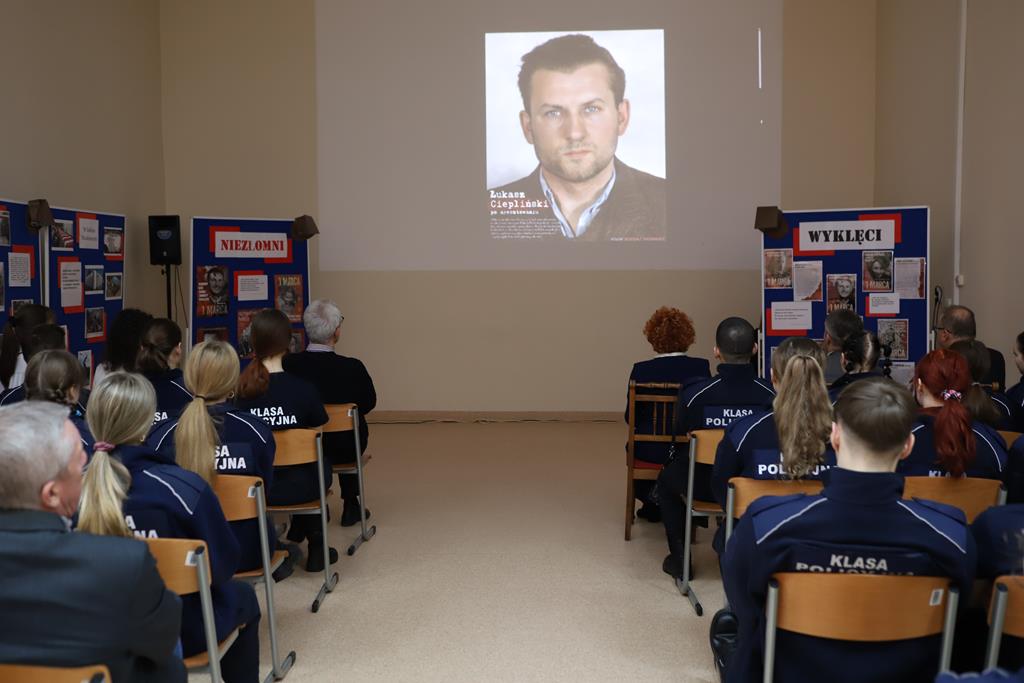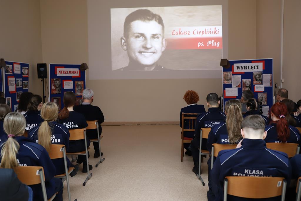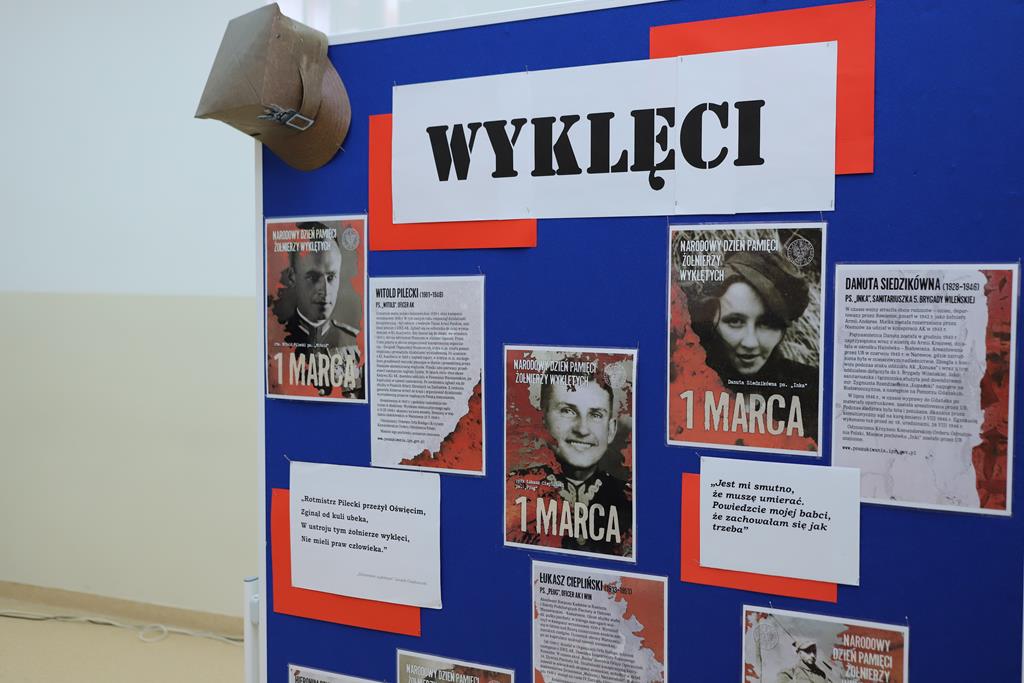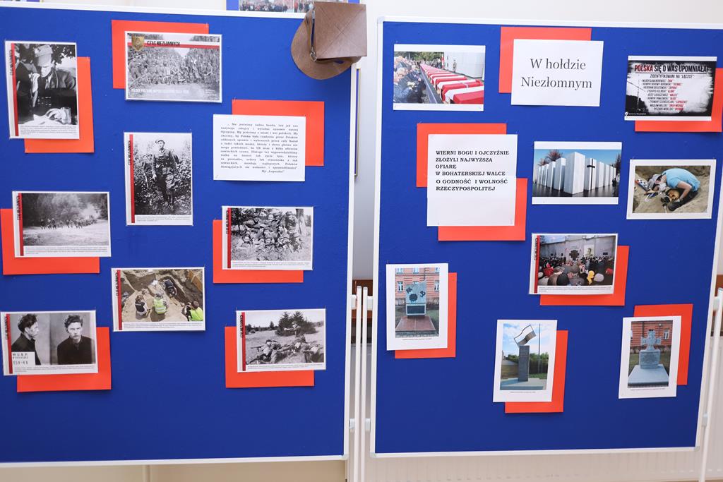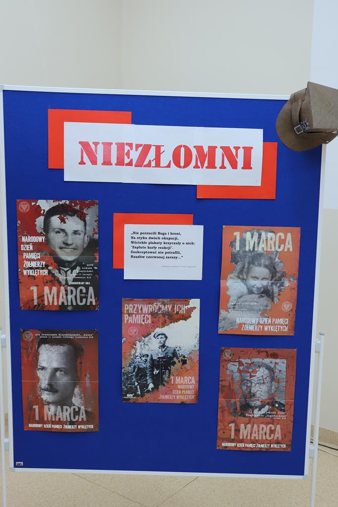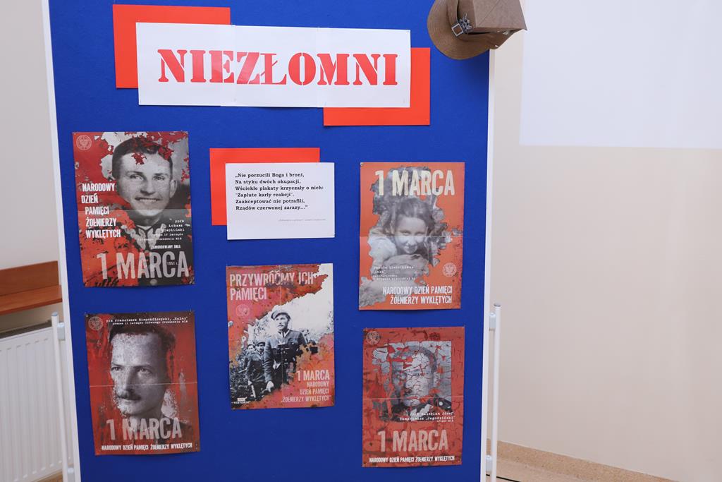 Uzupełnieniem uroczystości była ekspozycja „ W hołdzie Niezłomnym” przygotowana przez młodzież w oparciu o materiały IPN, przedstawiająca najbardziej znanych żołnierzy polskiego podziemia niepodległościowego.