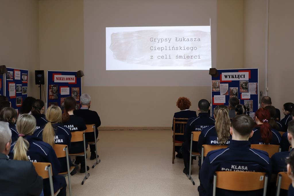 Fragmenty „Grypsów z celi śmierci”- zapisków z więzienia, będących wzruszającym pożegnaniem podpułkownika Łukasza Cieplińskiego z bliskimi, ale także testamentem ideowym skierowanym do syna , wprowadziły w klimat spotkania.