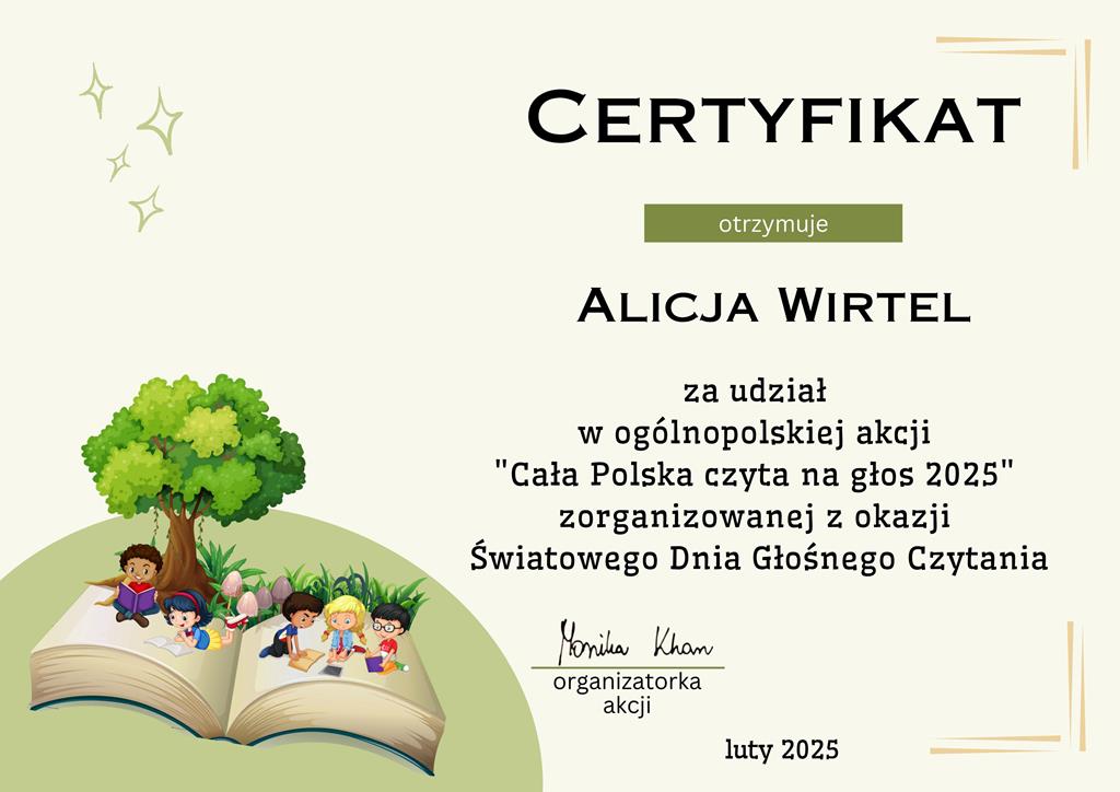 W lutym kolejny raz obchodzony był Światowy Dzień Głośnego Czytania ustanowiony w 2010 roku przez LitWorld, organizację non-profit wierzącą w moc czytania. W związku z tym świętem ogłoszono czwartą edycję ogólnopolskiej akcji pod nazwą Cała Polska czyta na głos 2025. Trwała ona do końca lutego. Nasza szkoła-jako jedyna w Łomży- już po raz trzeci wzięła udział w tej akcji. Do projektu Cała Polska czyta na głos 2025 przystąpili chętni uczniowie i nauczyciele.