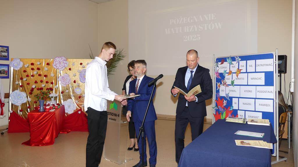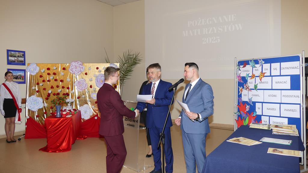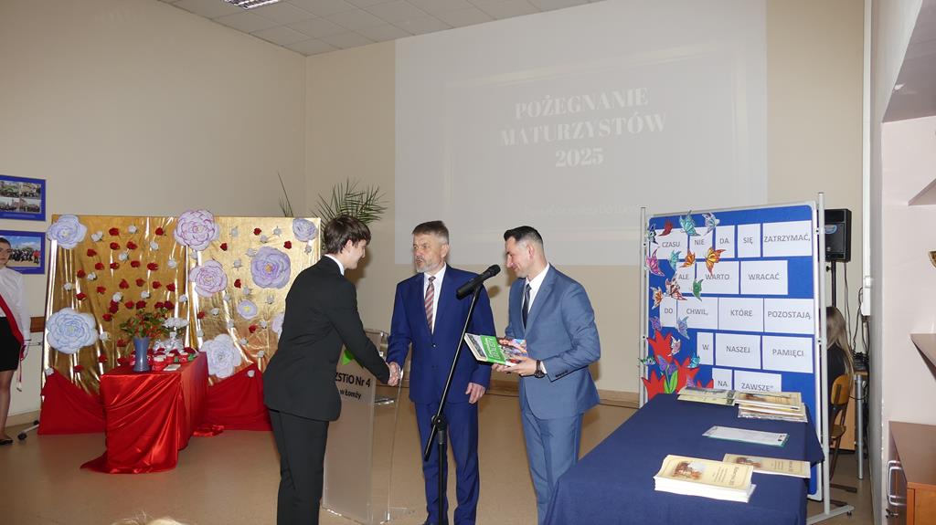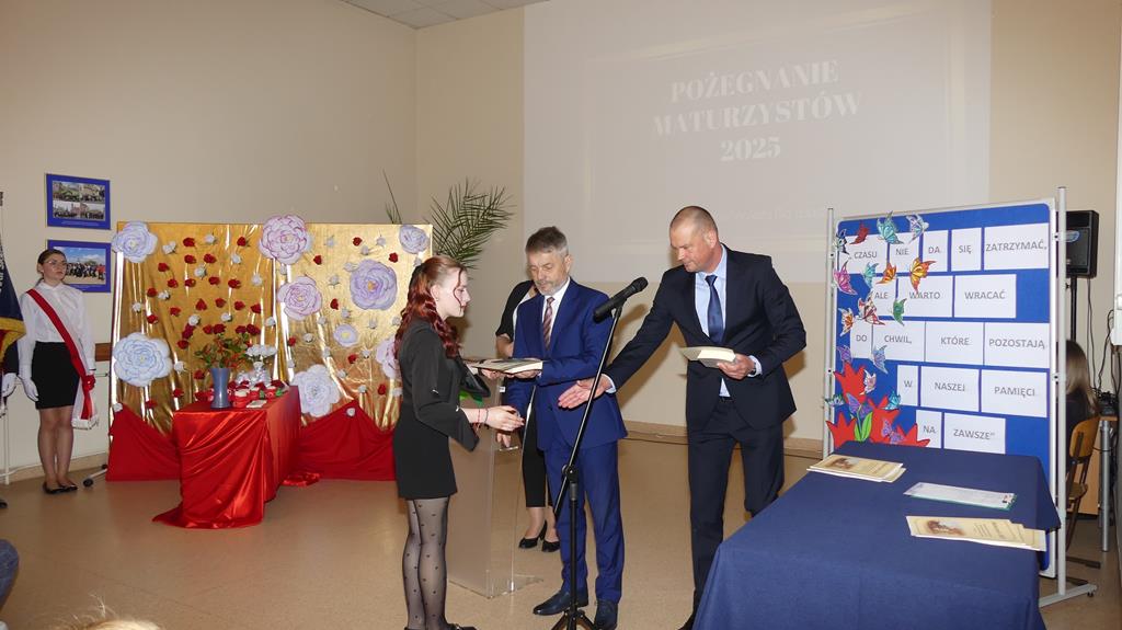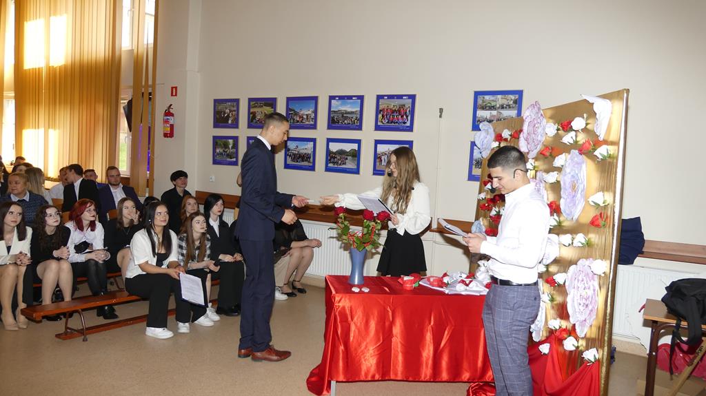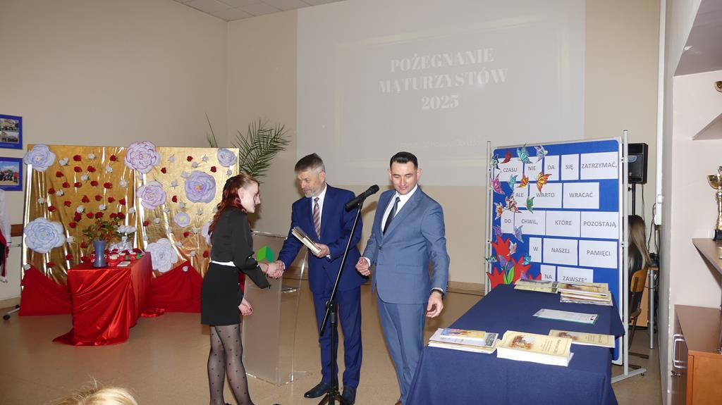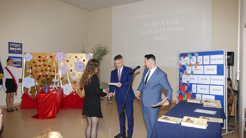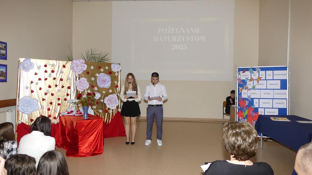 Dnia 25 kwietnia odbyło się uroczyste zakończenie roku szkolnego klas programowo najwyższych. W części oficjalnej absolwenci klas maturalnych odebrali świadectwa ukończenia szkoły. Po wręczeniu świadectw odbyła się akademia „Pożegnania maturzystów” przygotowana przez uczniów z młodszych klas. W programie artystycznym wzięli udział uczniowie z klasy 2AP, piosenki wykonały następujące osoby: Dominika Pogroszewska z klasy 1AP „Ostatni raz z moją klasą”, Kinga Kossakowska z klasy 2PP „Do kołyski”, Aleksandra Magdziak z klasy 2AP „Dni, których nie znamy”, „Nic nie może przecież wiecznie trwać” oraz Katarzyna Bagińska z klasy 3PP w wykonaniu utworu „Do widzenia przyjaciele”. Prezentację multimedialną z wspomnieniami chwil spędzonych w naszej szkole wykonali Paweł Cwalina i Wiktor Czubowski z klasy 2AP.