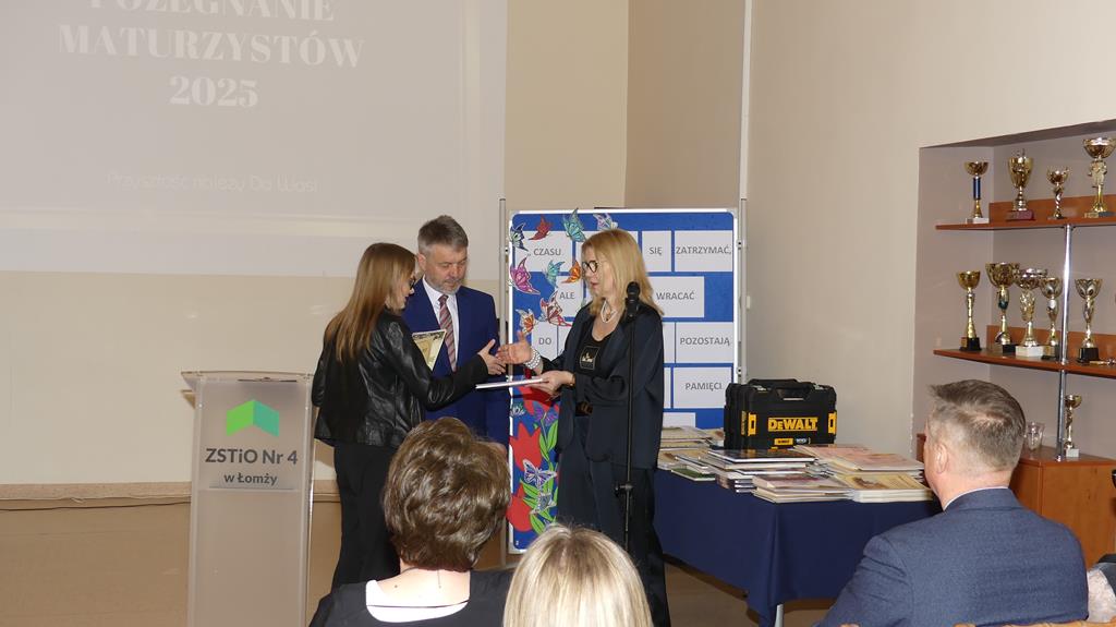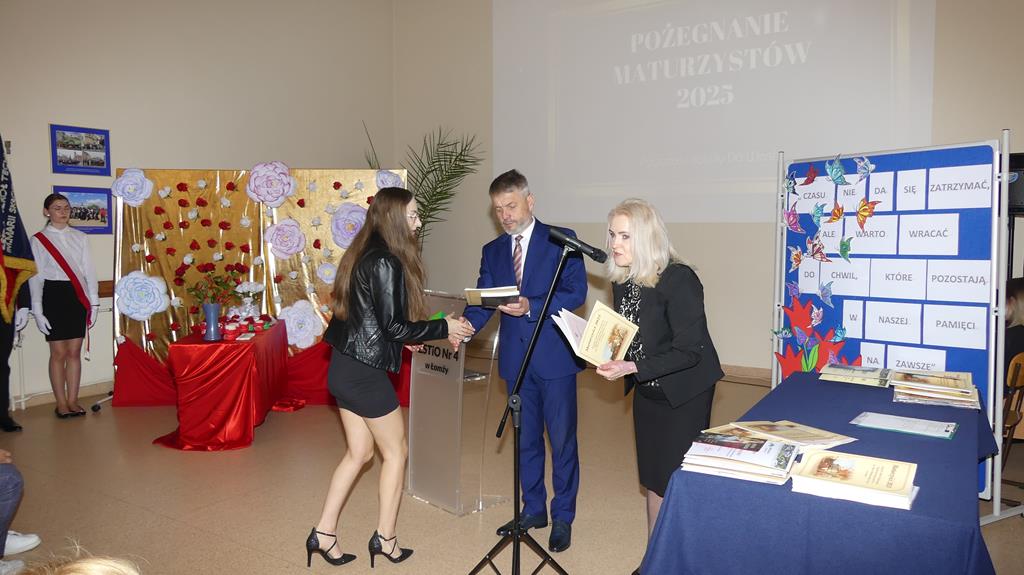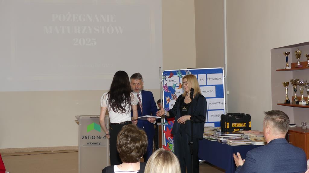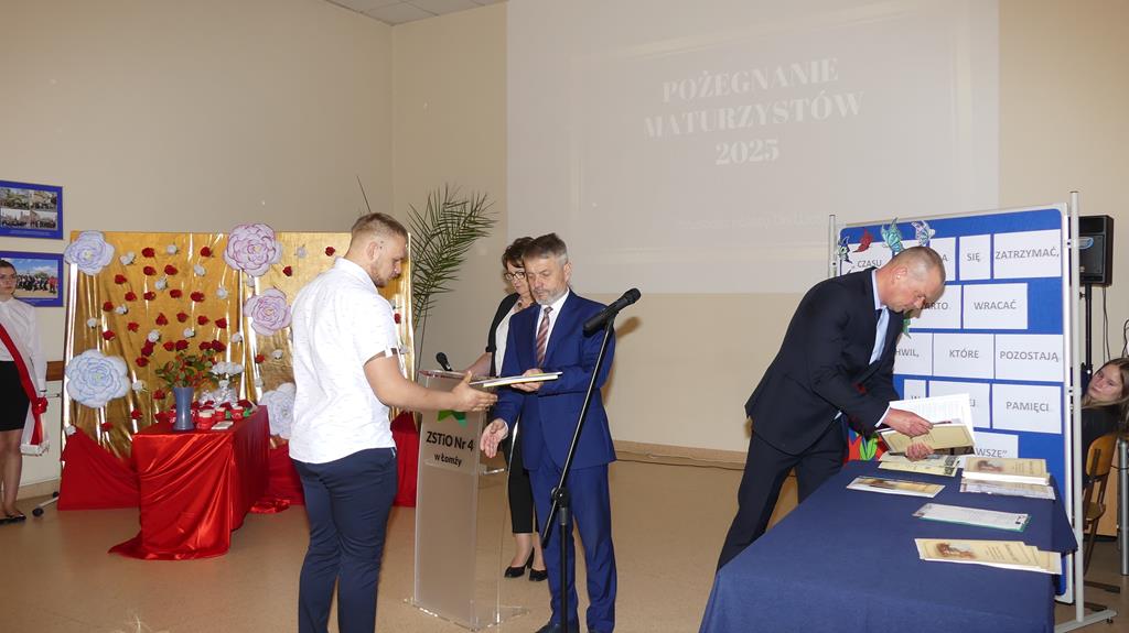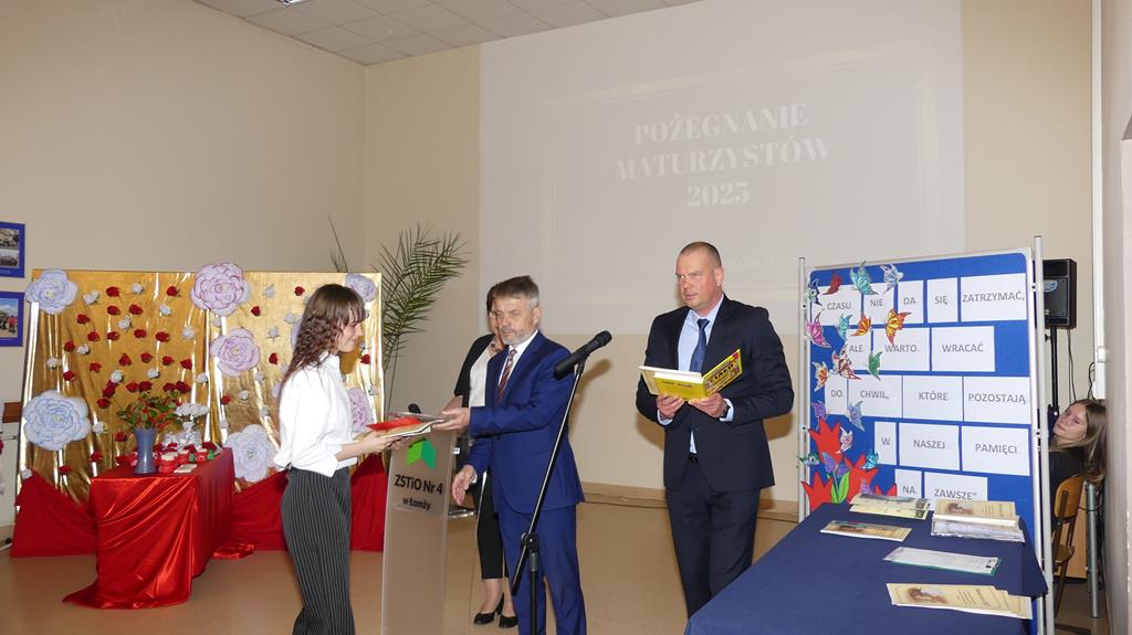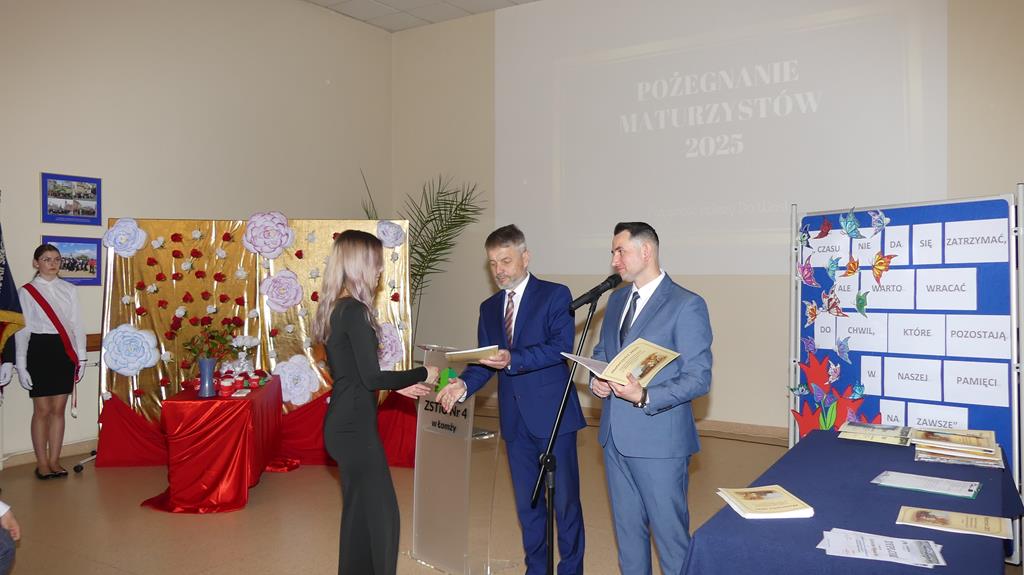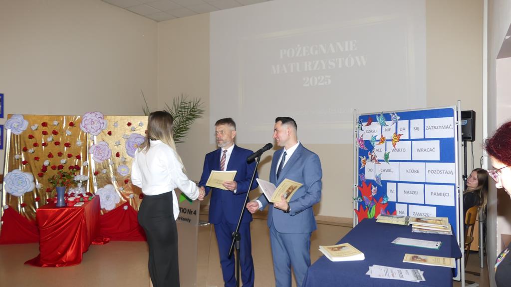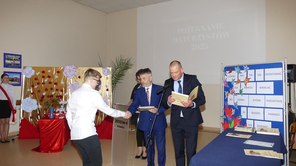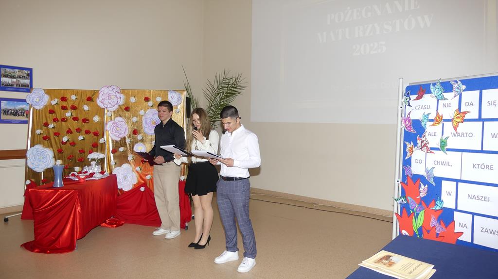 Dnia 25 kwietnia odbyło się uroczyste zakończenie roku szkolnego klas programowo najwyższych. W części oficjalnej absolwenci klas maturalnych odebrali świadectwa ukończenia szkoły. Po wręczeniu świadectw odbyła się akademia „Pożegnania maturzystów” przygotowana przez uczniów z młodszych klas. W programie artystycznym wzięli udział uczniowie z klasy 2AP, piosenki wykonały następujące osoby: Dominika Pogroszewska z klasy 1AP „Ostatni raz z moją klasą”, Kinga Kossakowska z klasy 2PP „Do kołyski”, Aleksandra Magdziak z klasy 2AP „Dni, których nie znamy”, „Nic nie może przecież wiecznie trwać” oraz Katarzyna Bagińska z klasy 3PP w wykonaniu utworu „Do widzenia przyjaciele”. Prezentację multimedialną z wspomnieniami chwil spędzonych w naszej szkole wykonali Paweł Cwalina i Wiktor Czubowski z klasy 2AP.