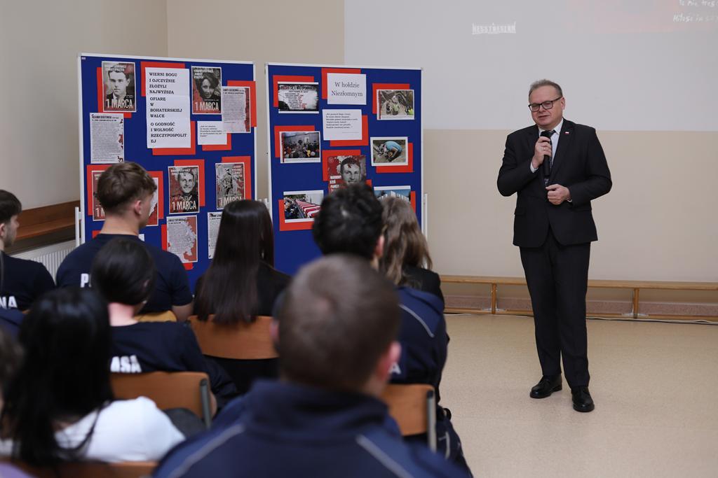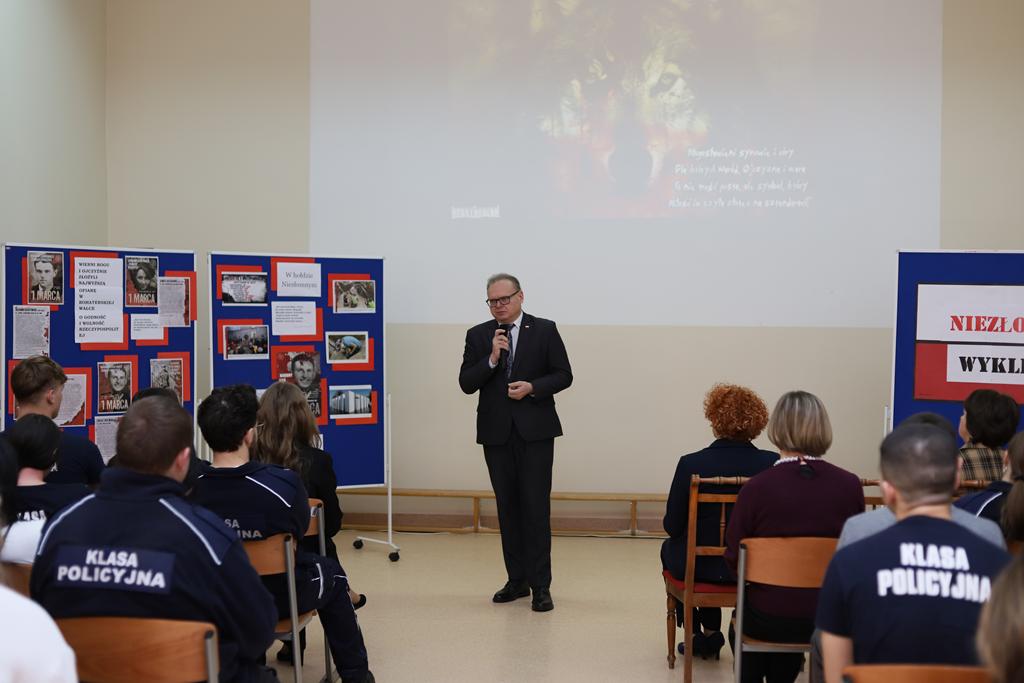26 lutego 2026r. społeczność naszej szkoły uczestniczyła w uroczystości związanej z Narodowym Dniem Pamięci Żołnierzy Wyklętych. W ten sposób uczciła pamięć i złożyła hołd żołnierzom antykomunistycznego i antysowieckiego podziemia działającego w Polsce w latach 1944 – 1963, wykluczonym i skazanym na zapomnienie przez władze PRL.