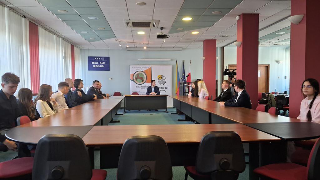 Młodzieżowa Rada Miasta Łomży 2026Opublikowano: poniedziałek, 16, marzec 2026 22:57 | Wiesław Czupryński | Drukuj | Odsłony: 375 W dn.16.03. w sali konferencyjnej Urzędu Miejskiego odbyła się uroczystość zaprzysiężenia radnych Młodzieżowej Rady Miasta Łomży. Z naszej szkoły mamy dwóch radnych Krystiana Bejgiera oraz Alana Wiśniewskiego.