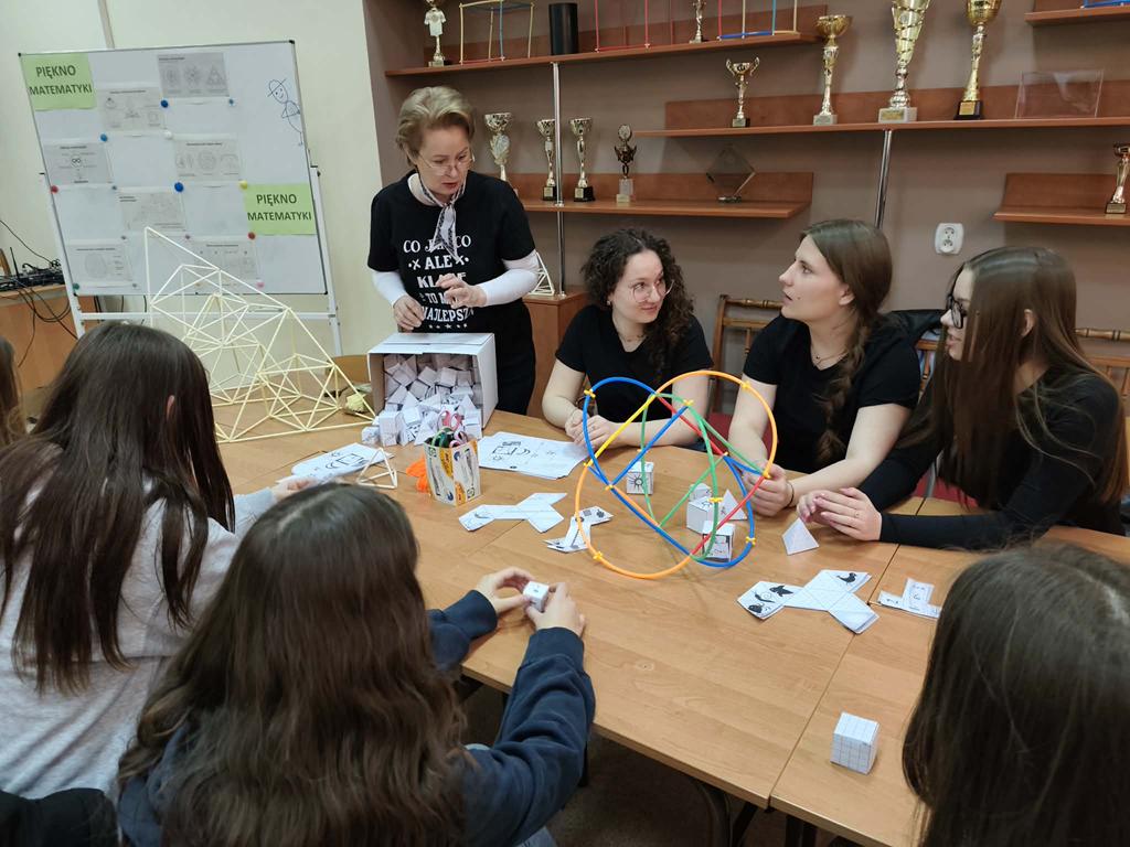 Grunt to dobre doświadczenie! pod takim hasłem odbyło się w naszej szkole wydarzenie promocyjne dla zaproszonych ósmoklasistów ze Szkoły Podstawowej nr 10 im. Jana Pawła II z Łomży . Uczniowie uczestniczyli w zajęciach, gdzie poprzez doświadczenie dotykali tajników fizyki (pokaz prawa Coulomba, obserwacja linii pola magnetycznego) i chemii (efektowny wulkan, piękna lampa lawy). Pod kierunkiem starszych uczennic samodzielnie kleili modele brył przestrzennych czy budowali szkielety brył ze słomek , składali również origamii oraz próbowali swoich umiejętności w grach matematycznych takich jak rummikub, qwirkle czy ubongo. Uczestniczyli również w lekcji biologii oraz zwiedzili pracownię komputerową.