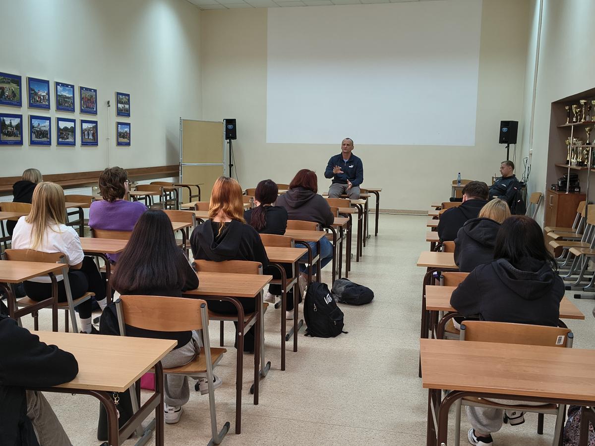 W dniu 7 października 2025 roku gościliśmy w naszej szkole wychowawcę więziennego z więzienia w Przytułach Starych wraz z jednym z osadzonych (osobą uzależniona od alkoholu i substancji psychoaktywnych). Tematem spotkania był problem uzależnień wśród młodzieży, jego przyczyny, skutki oraz drogi wsparcia. Spotkanie miało na celu podniesienie świadomości młodzieży na temat zagrożeń związanych z uzależnieniem i zaprezentowanie form pomocy. Mamy nadzieję na więcej takich lekcji życia.
