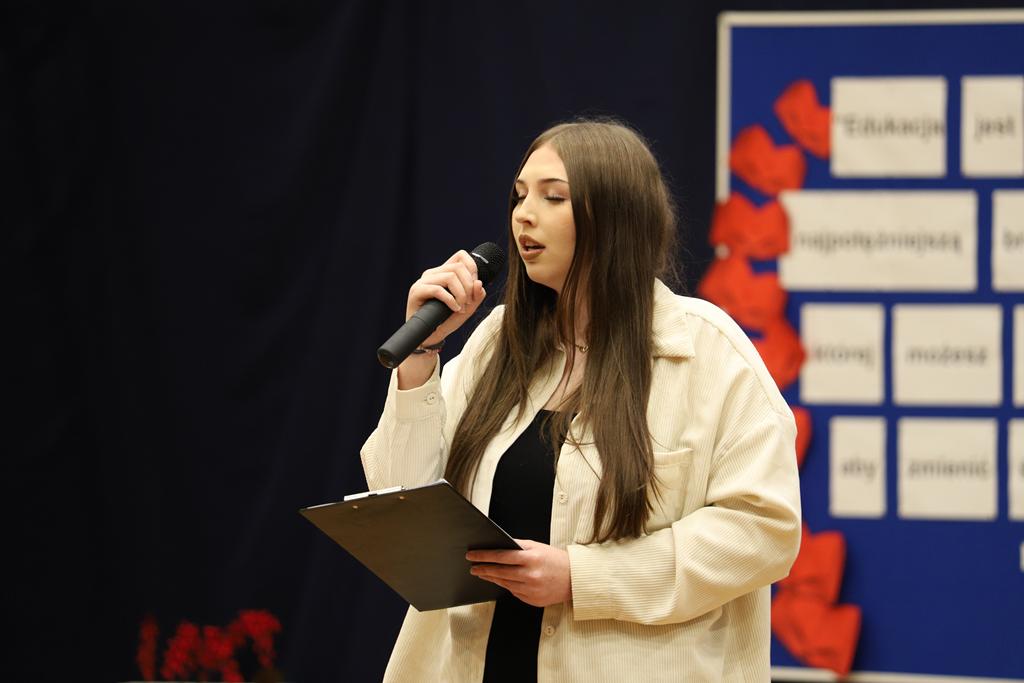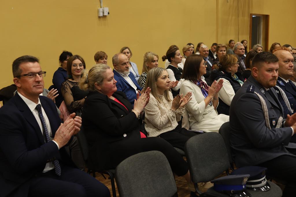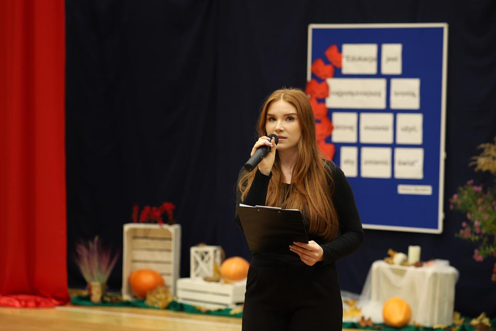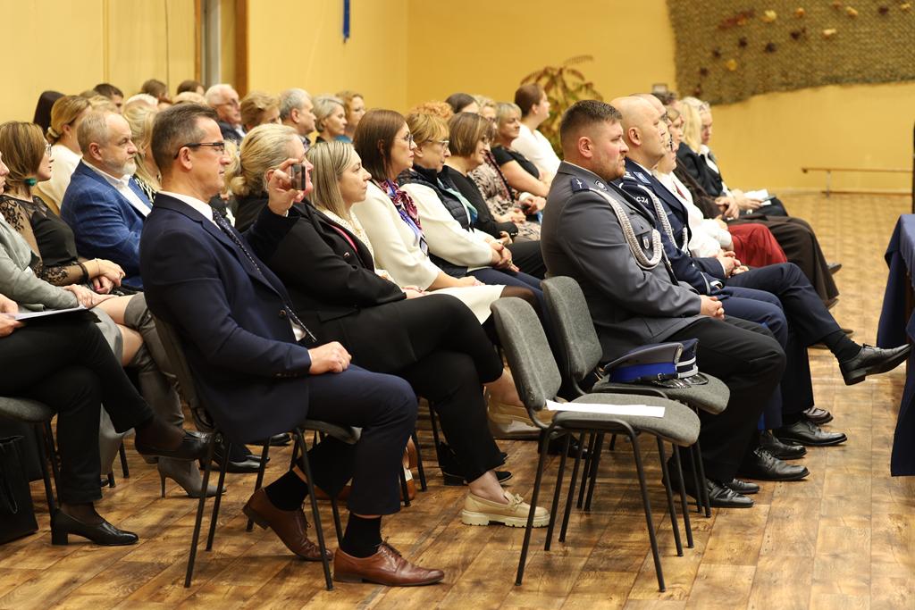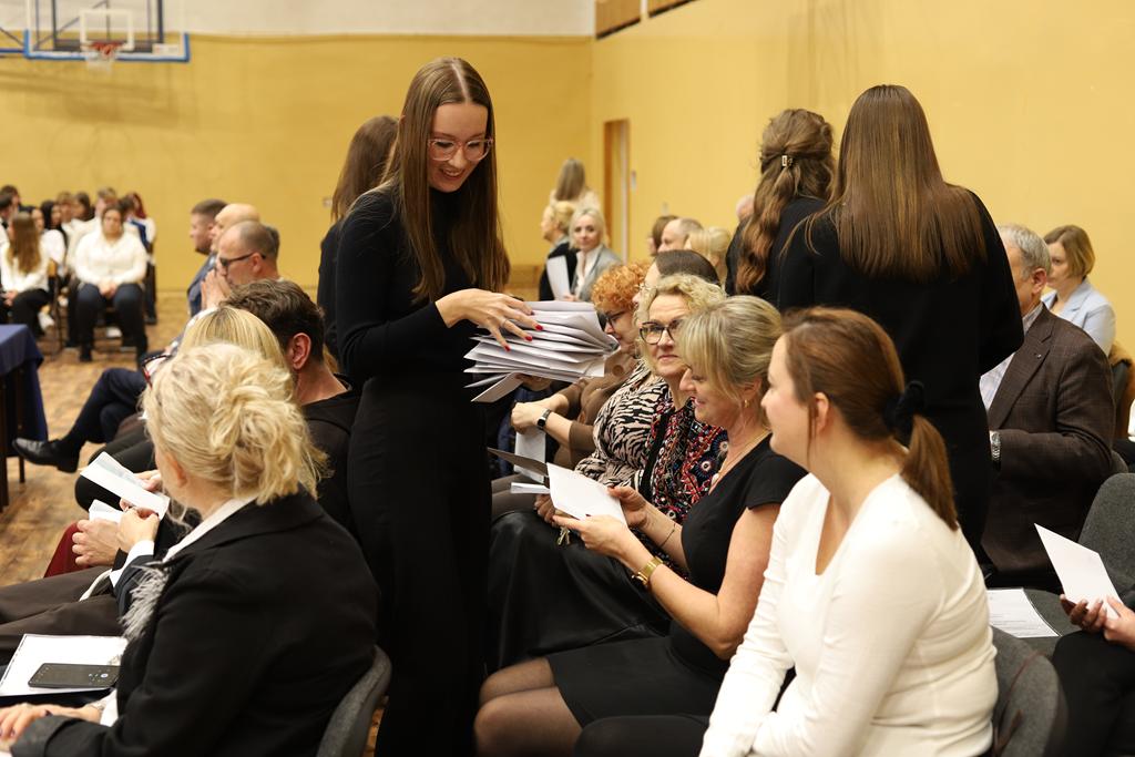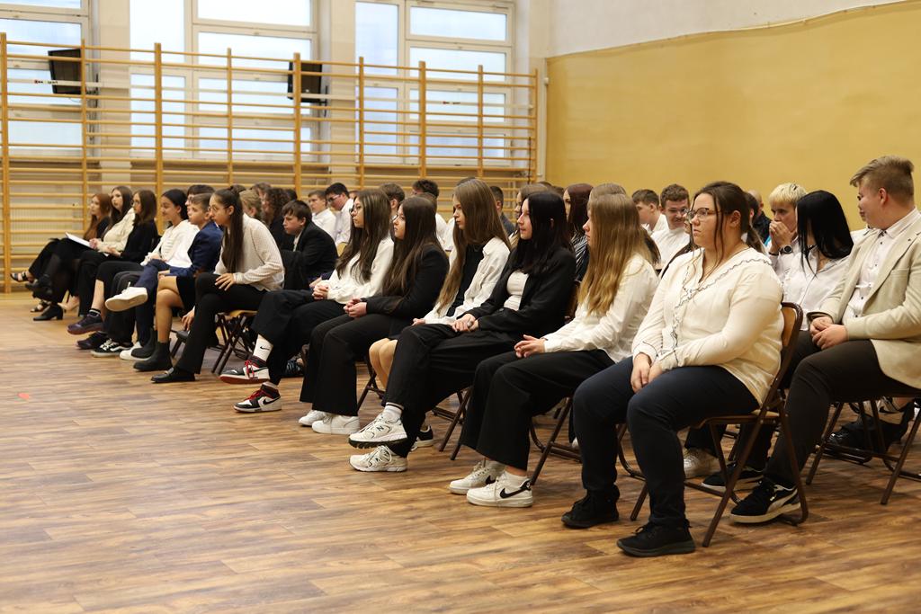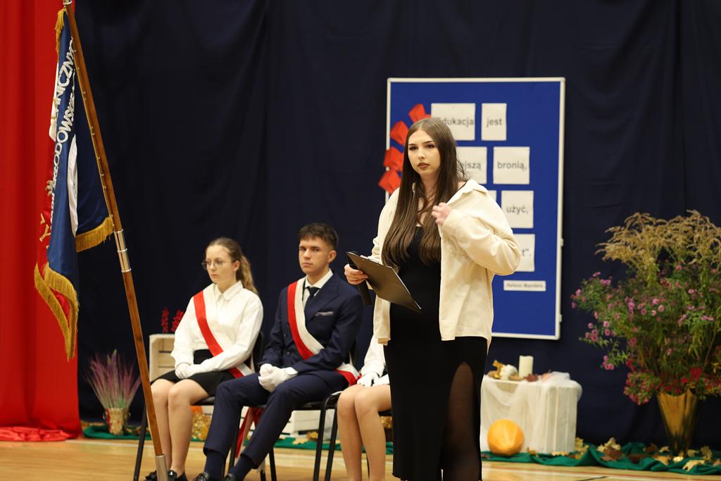 W dniu 24.10.2025 r. w Hali Sportowej ZSTiO Nr 4 w Łomży odbyła się podwójna uroczystość z okazji Ślubowania uczniów klas pierwszych oraz Dnia Edukacji Narodowej, popularnie zwanej Dniem Nauczyciela. Na spotkanie przybyli uczniowie, nauczyciele, rodzice oraz zaproszeni goście – młodszy inspektor Pan Piotr Klej oraz młodszy aspirant Pan Marcin Lipiński z Komendy Miejskiej Policji w Łomży, Pani Anna Dziemiańczuk, Komendant Ochotniczego Hufca Pracy w Łomży oraz Gwardian Klasztoru Zakonu Braci Mniejszych Kapucynów w Łomży i jednocześnie proboszcz naszej parafii, ojciec Michał Kulczycki.