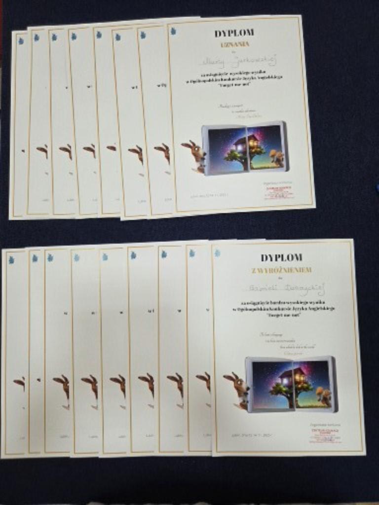 W konkursie wzięło udział łącznie 17 uczniów. Wszyscy nasi uczniowie odnieśli wielki sukces uzyskując 9 dyplomów z wyróżnieniem i 8 dyplomów uznania.