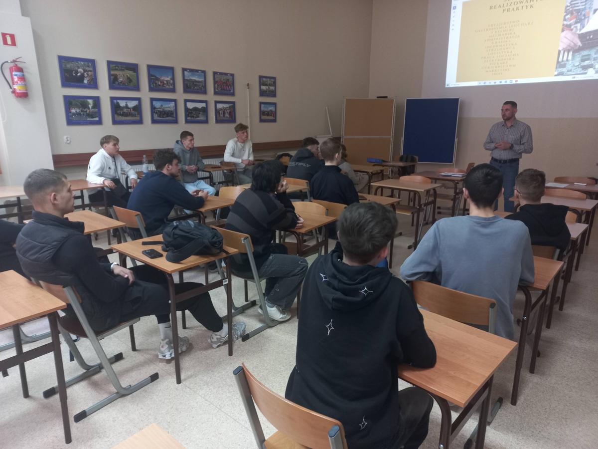 W dniu 26.09.2025r. odbyło się spotkanie organizacyjne z uczniami Zespołu Szkół Technicznych i Ogólnokształcących Nr 4 im. Marii Skłodowskiej-Curie w Łomży uczestniczącymi w przedsięwzięcia Gastrobuild o numerze 2024-1-PL01-KA122-VET-000234669.