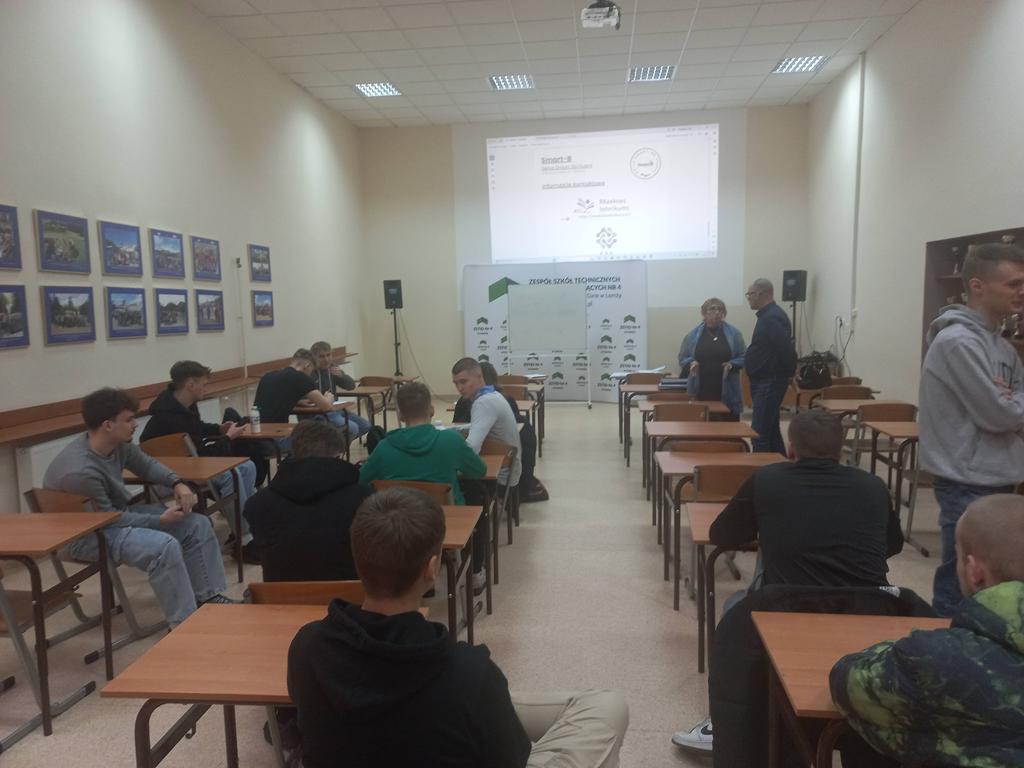 W dniu 16.12.2025r. odbyło się spotkanie ewaluacyjne z wyjazdu uczniów z Zespołu Szkół Technicznych i Ogólnokształcących Nr 4 im. Marii Skłodowskiej-Curie w Łomży do Hiszpanii na staże zagraniczne w ramach przedsięwzięcia Gastrobuild o numerze 2024-1-PL01-KA122-VET-000234669 współfinansowanego przez Unię Europejską ze środków Europejskiego Funduszu Społecznego+ w Programie Fundusze Europejskie dla Rozwoju Społecznego 2021-2027 realizowanego na zasadach Programu Erasmus+.