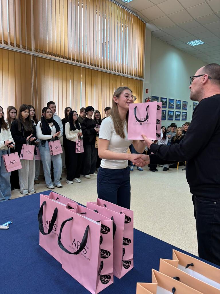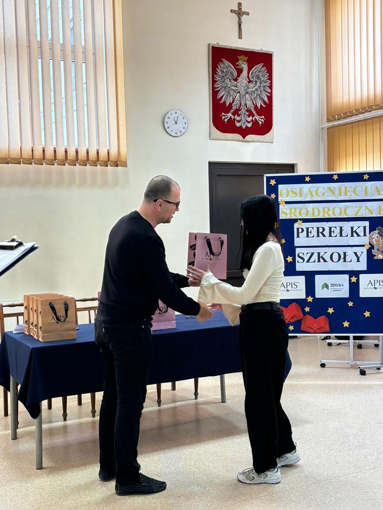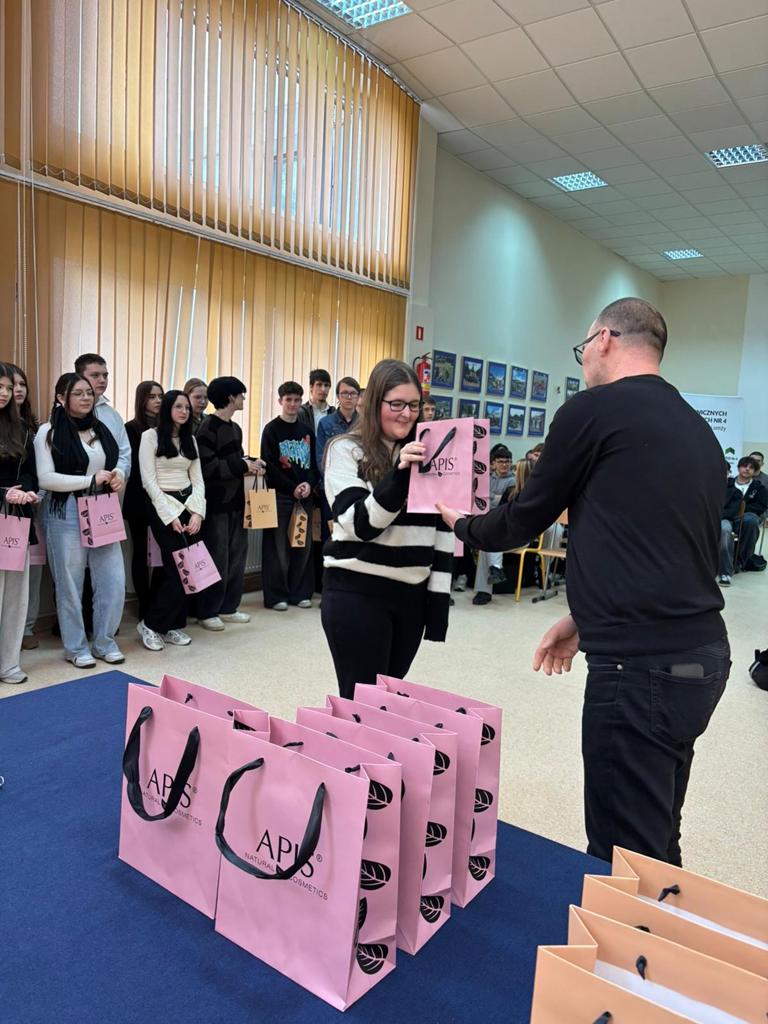 Uroczystość z udziałem partnera wydarzenia - firmy Apis Cosmetics. W naszej szkole odbyło się uroczyste wręczenie nagród w ramach akcji Osiągnięcia śródroczne- Perełki Szkoły .Podczas wydarzenia wyróżnieni zostali uczniowie, którzy osiągnęli średnią ocen powyżej 4,0, wykazując się systematyczną pracą, zaangażowaniem oraz wysokimi wynikami w nauce. Był to wyjątkowy moment pełen dumy, radości i zasłużonych gratulacji. Serdeczne podziękowania kierujemy do firmy Apis Cosmetics - partnera wydarzenia, która chętnie włączyła się w naszą inicjatywę i wsparła nas w przygotowaniu nagród. Dzięki jej zaangażowaniu mogliśmy w wyjątkowy sposób docenić wysiłek naszych uczniów. Gratulujemy wszystkim nagrodzonym i życzymy dalszych sukcesów w kolejnych miesiącach nauki!