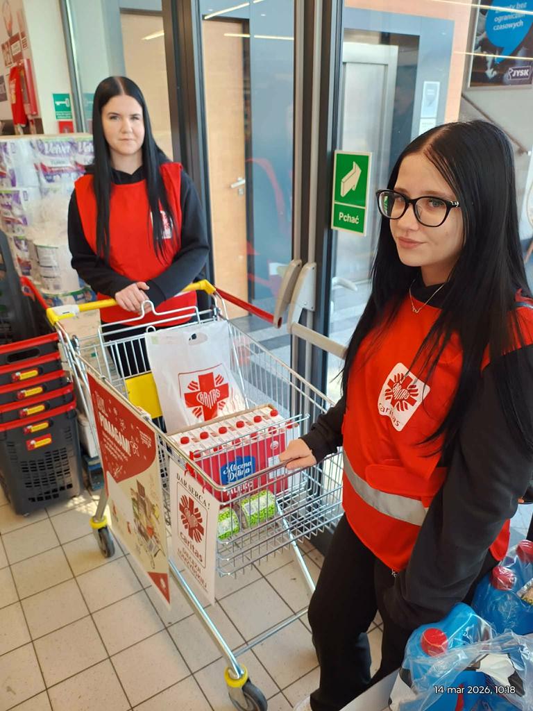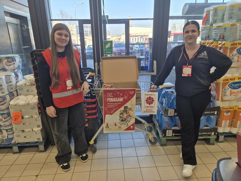 W dniach 13–14 marca 2026 roku uczennice naszego Szkolnego Koła Caritas (SKC) aktywnie uczestniczyły w Ogólnopolskiej zbiórce żywności „Tak. Pomagam!”, organizowanej przez Caritas Diecezji Łomżyńskiej. To wyjątkowe wydarzenie trwało dwa dni i miało na celu wsparcie osób potrzebujących w całej Polsce, w tym w naszej lokalnej społeczności.