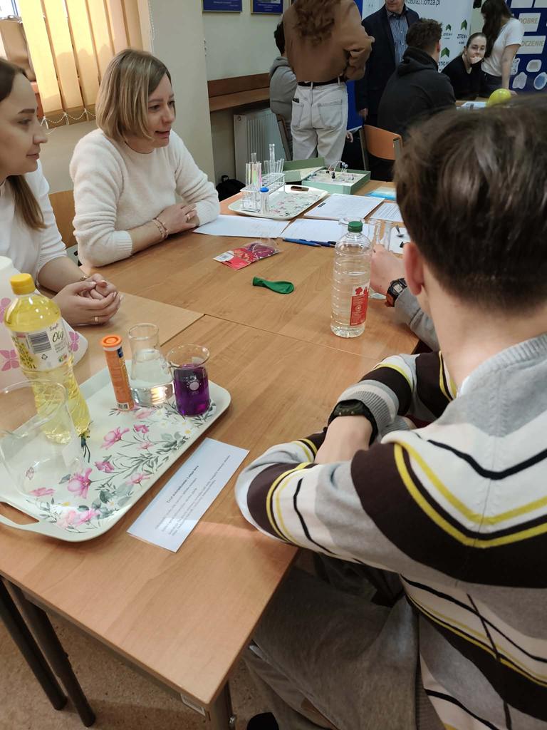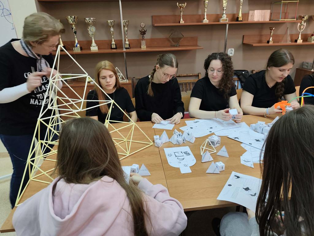 Grunt to dobre doświadczenie! pod takim hasłem odbyło się w naszej szkole wydarzenie promocyjne dla zaproszonych ósmoklasistów ze Szkoły Podstawowej nr 10 im. Jana Pawła II z Łomży . Uczniowie uczestniczyli w zajęciach, gdzie poprzez doświadczenie dotykali tajników fizyki (pokaz prawa Coulomba, obserwacja linii pola magnetycznego) i chemii (efektowny wulkan, piękna lampa lawy). Pod kierunkiem starszych uczennic samodzielnie kleili modele brył przestrzennych czy budowali szkielety brył ze słomek , składali również origamii oraz próbowali swoich umiejętności w grach matematycznych takich jak rummikub, qwirkle czy ubongo. Uczestniczyli również w lekcji biologii oraz zwiedzili pracownię komputerową.