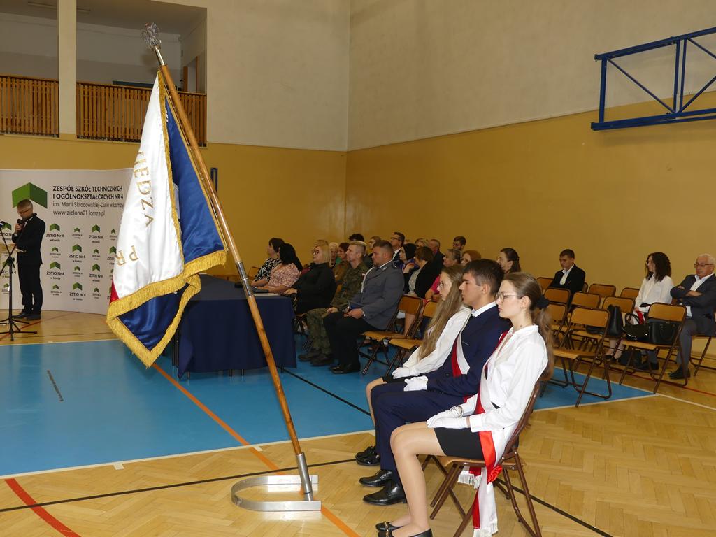 Spotkanie zostało uświetnione przybyciem gości, wśród których znaleźli się młodszy aspirant Marcin Lipiński z Komendy Miejskiej Policji w Łomży oraz chorąży Paweł Parzych z Wojskowego Centrum Rekrutacji w Łomży. Gościliśmy również licznie zgromadzonych Rodziców, z Przewodniczącą Rady Rodziców Szkoły Panią Iwoną Zawalich.