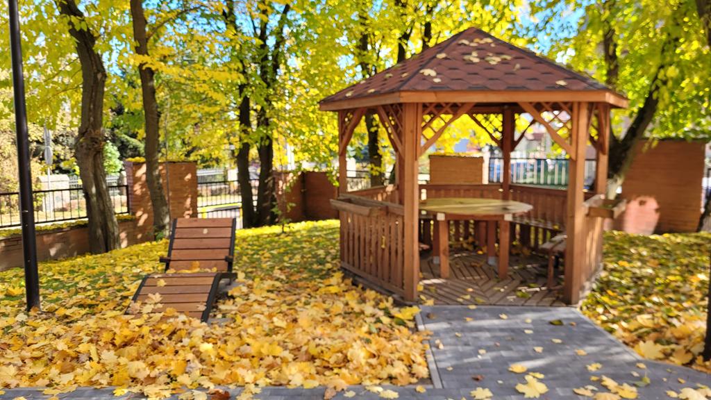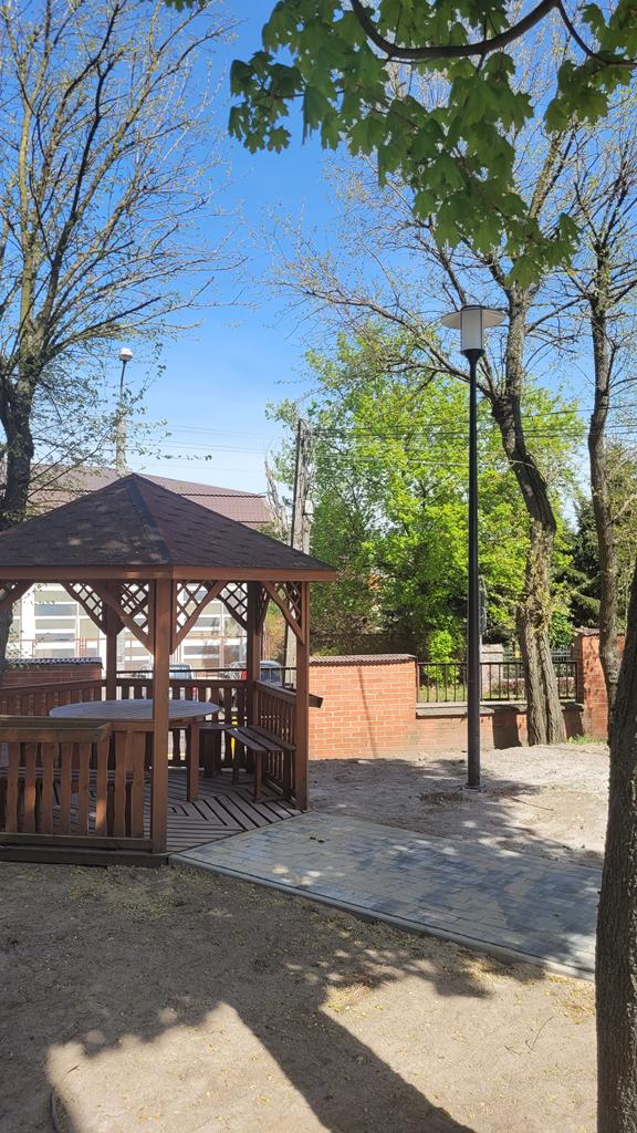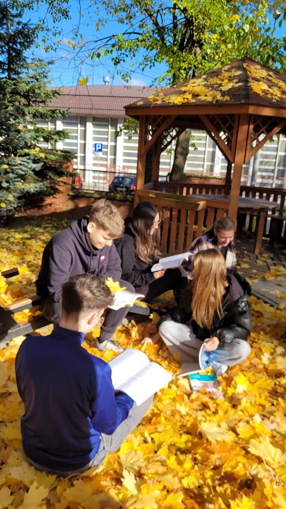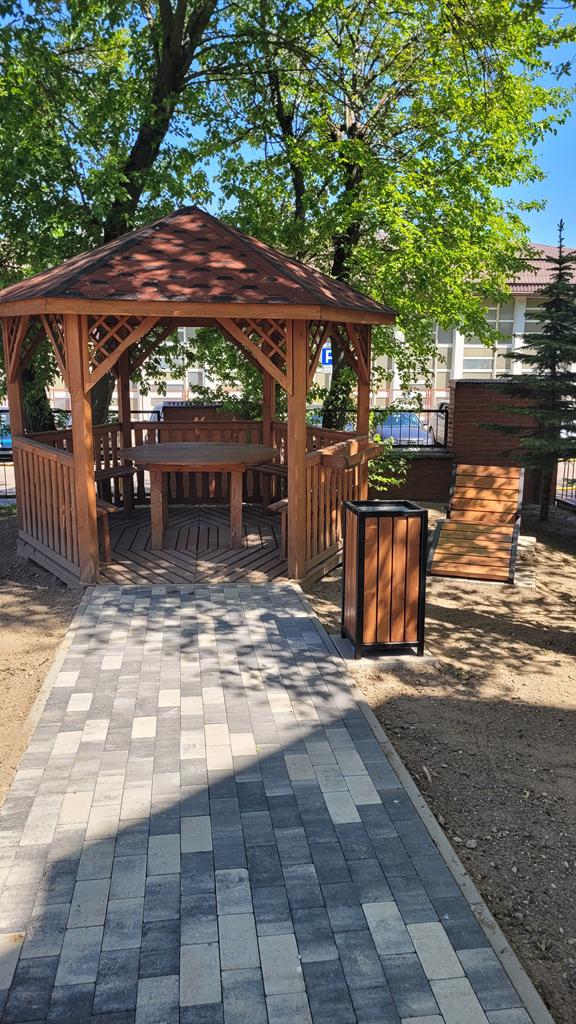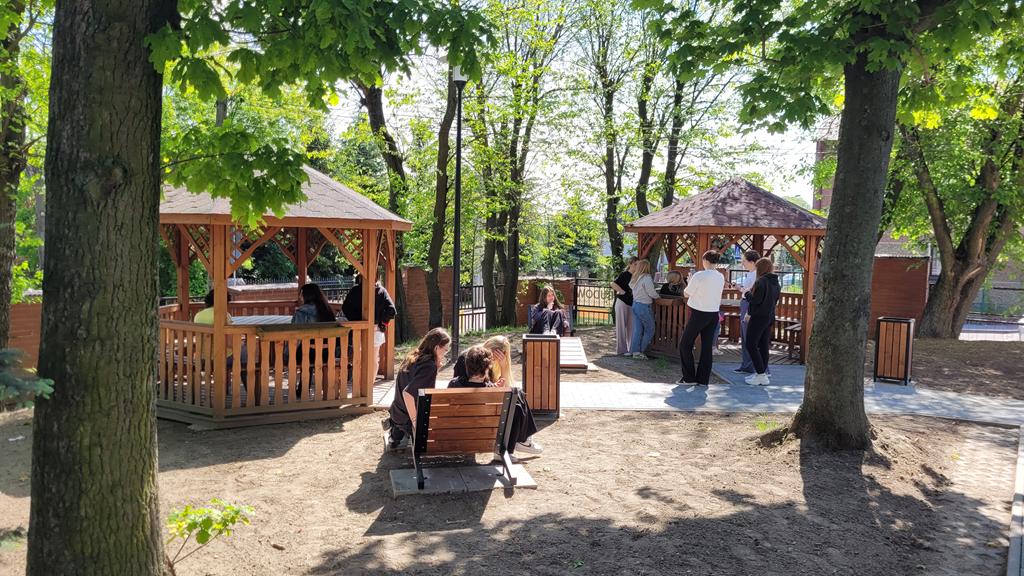 Zadanie zostało zrealizowane w maju 2025r. Dziś Zielona Strefa Relaksu w jesiennej odsłonie jest wykorzystana i wzbogaca tereny zielone wokół szkoły dla prowadzenia zajęć, relaksu i rekreacji społeczności szkolnej. Jest też udostępniona mieszkańcom Łomży.