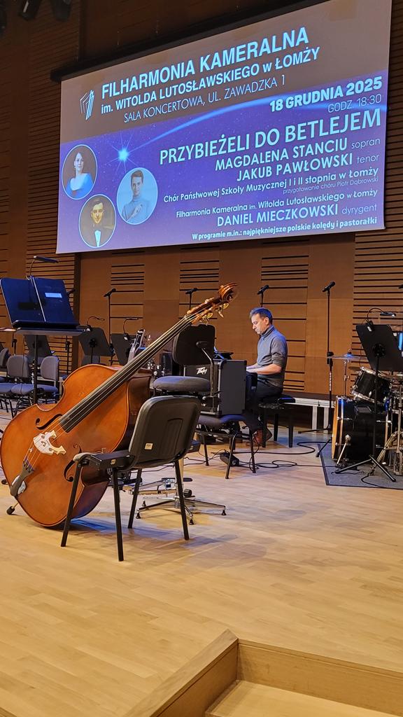 18 grudnia 2025 r., w wyjątkowym przedświątecznym czasie, młodzież naszej szkoły wraz z nauczycielami uczestniczyła w wyjściu grupowym do Filharmonii Łomżyńskiej. Uczniowie wysłuchali koncertu kolęd i pastorałek, był to czas pełen muzyki, radości i świątecznego nastroju. Wspólne śpiewanie sprzyjało integracji zespołów klasowych, pozwoliło również poczuć magię nadchodzących świąt. W wydarzeniu wzięły udział klasy techniczne o profilu: technik hotelarstwa, technik żywienia i usług gastronomicznych oraz technik budownictwa. Inicjatorką tego pięknego spotkania była Pani Edyta Trzaska. Dzięki Jej zaangażowaniu uczniowie mogli wspólnie celebrować tradycję kolędowania w murach filharmonii.