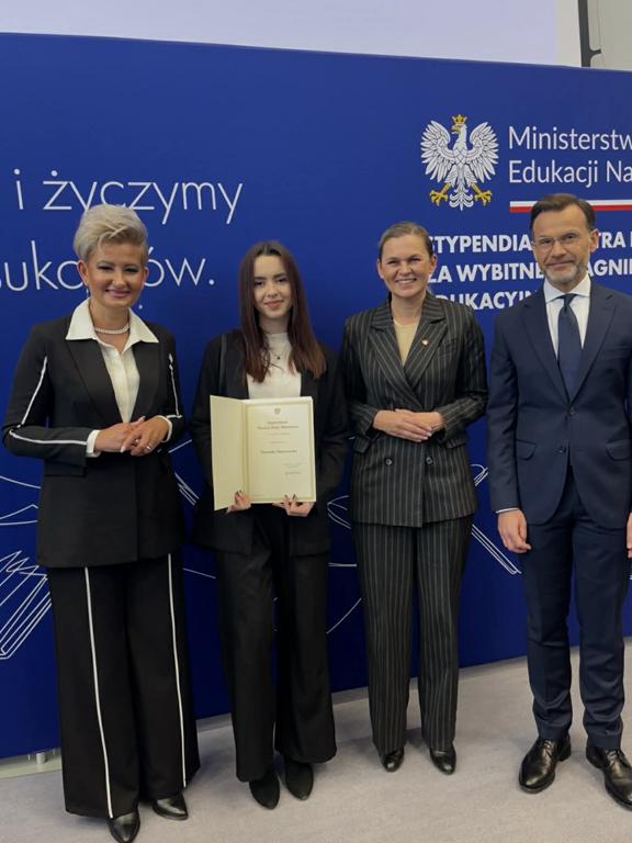 W dn.12.01.2026 r. w Białymstoku odbyło się uroczyste wręczenie nagród Prezesa Rady Ministrów. Wśród wyróżnionych była nasza uczennica z klasy 2AP Dominika Pogroszewska, której nagrodę wręczyła aktualna minister MEN-u p. Barbara Nowacka.